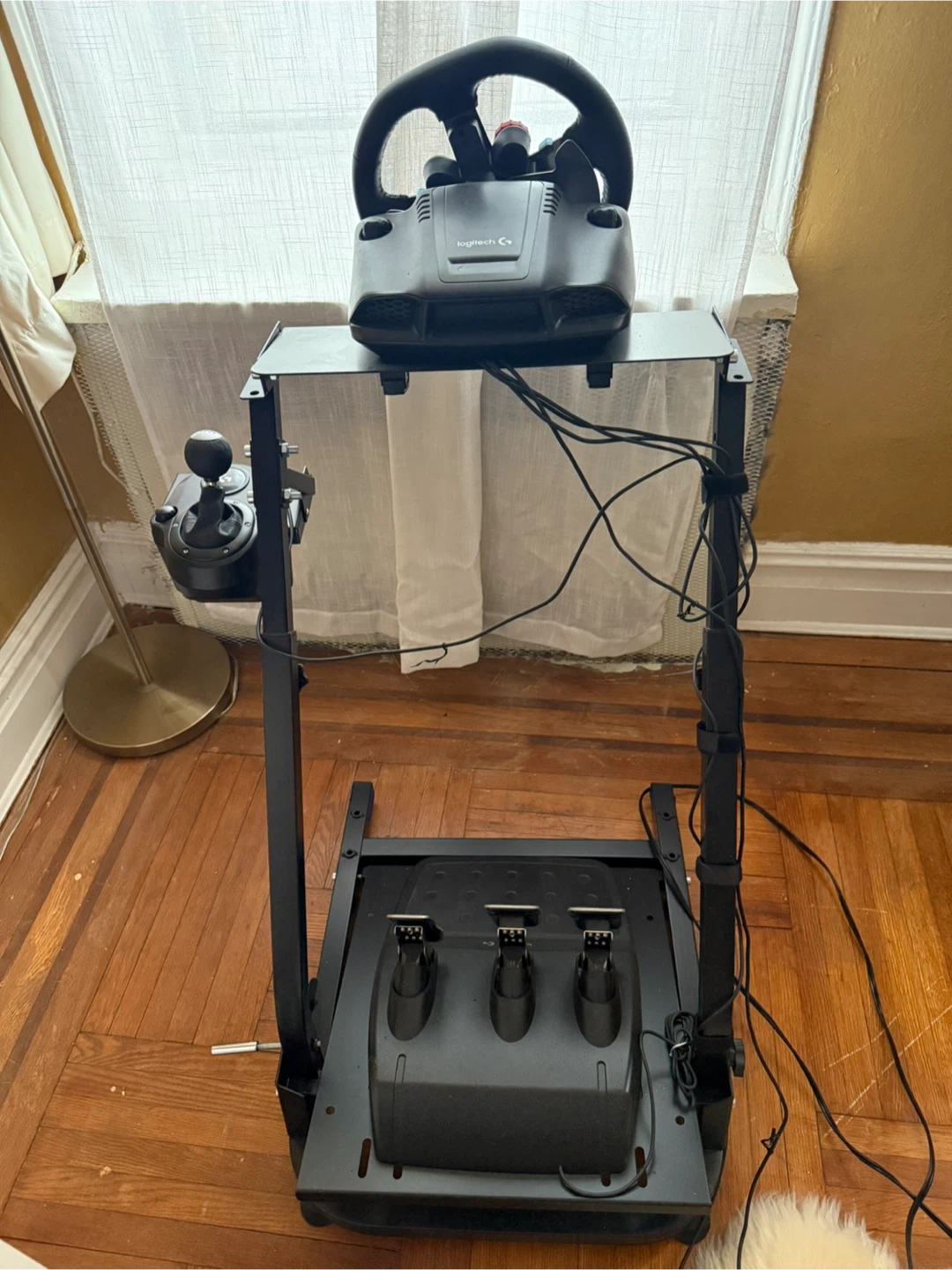 Selling a Logitech G920 racing wheel with pedals and a stand. This setup is perfect for immersive racing games. The wheel and pedals are in good condition and provide realistic feedback. Great for PC or Xbox!