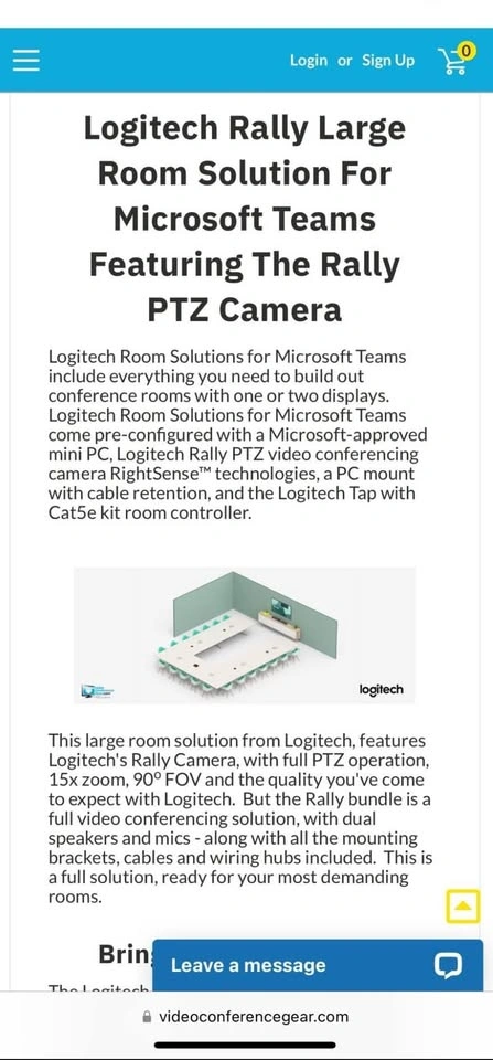 68Logitech Room Solutions for Microsoft Teams include everything you need to build out conference rooms with one or two displays. Logitech Room Solutions for Microsoft Teams come pre-configured with a Microsoft-approved mini PC, Logitech Rally PTZ video conferencing camera RightSense™ technologies, a PC mount with cable retention, and the Logitech Tap with Cat5e kit room controller
