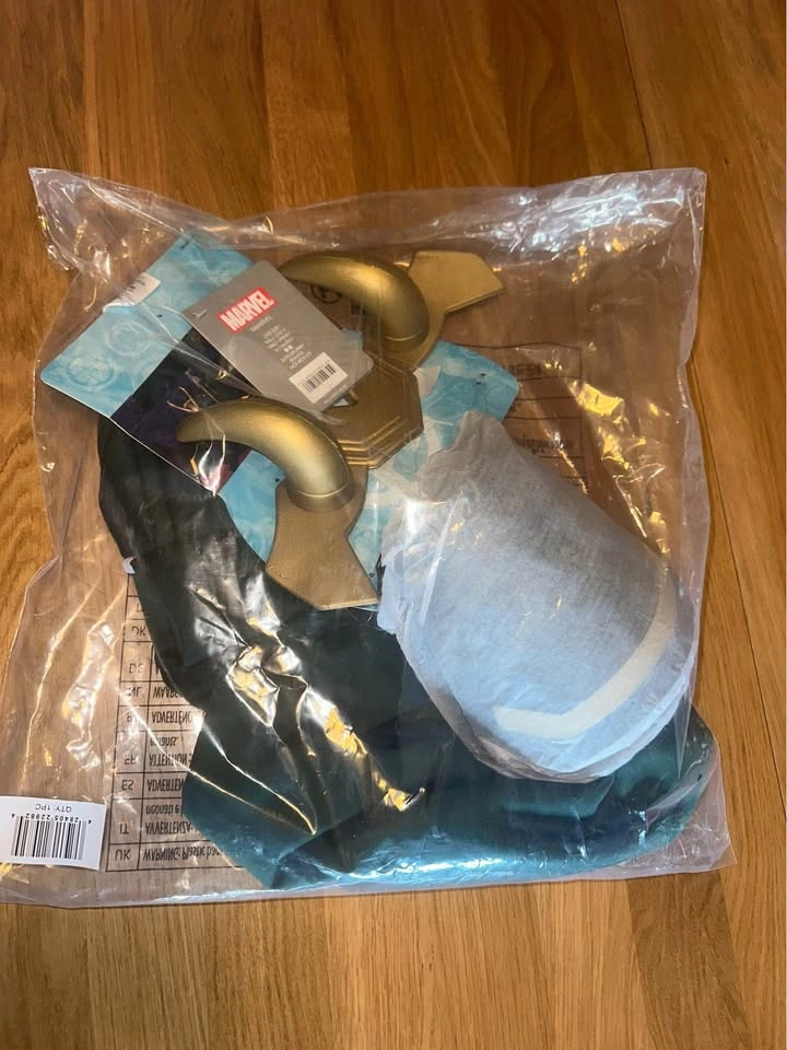 10Authentic Disney costume. Includes Loki horns, epaulets and cape. Horns feature elastic strap for secure fit.
