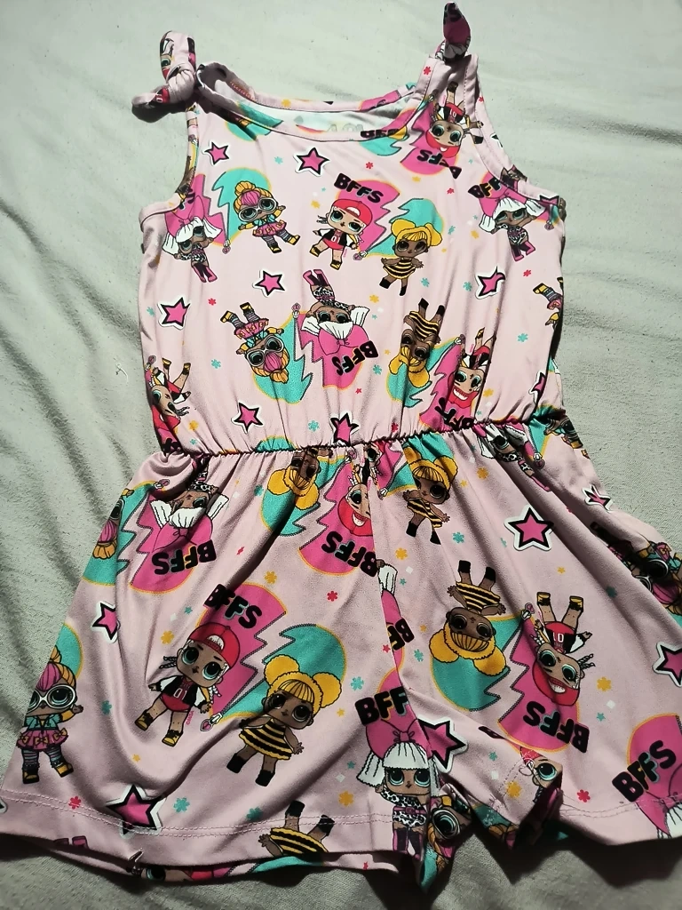 65This adorable LOL Surprise! dress is perfect for your little one. It features a fun and colorful print with the LOL Surprise! dolls, and it's made of a soft and comfortable material. The dress is a size S/CH.