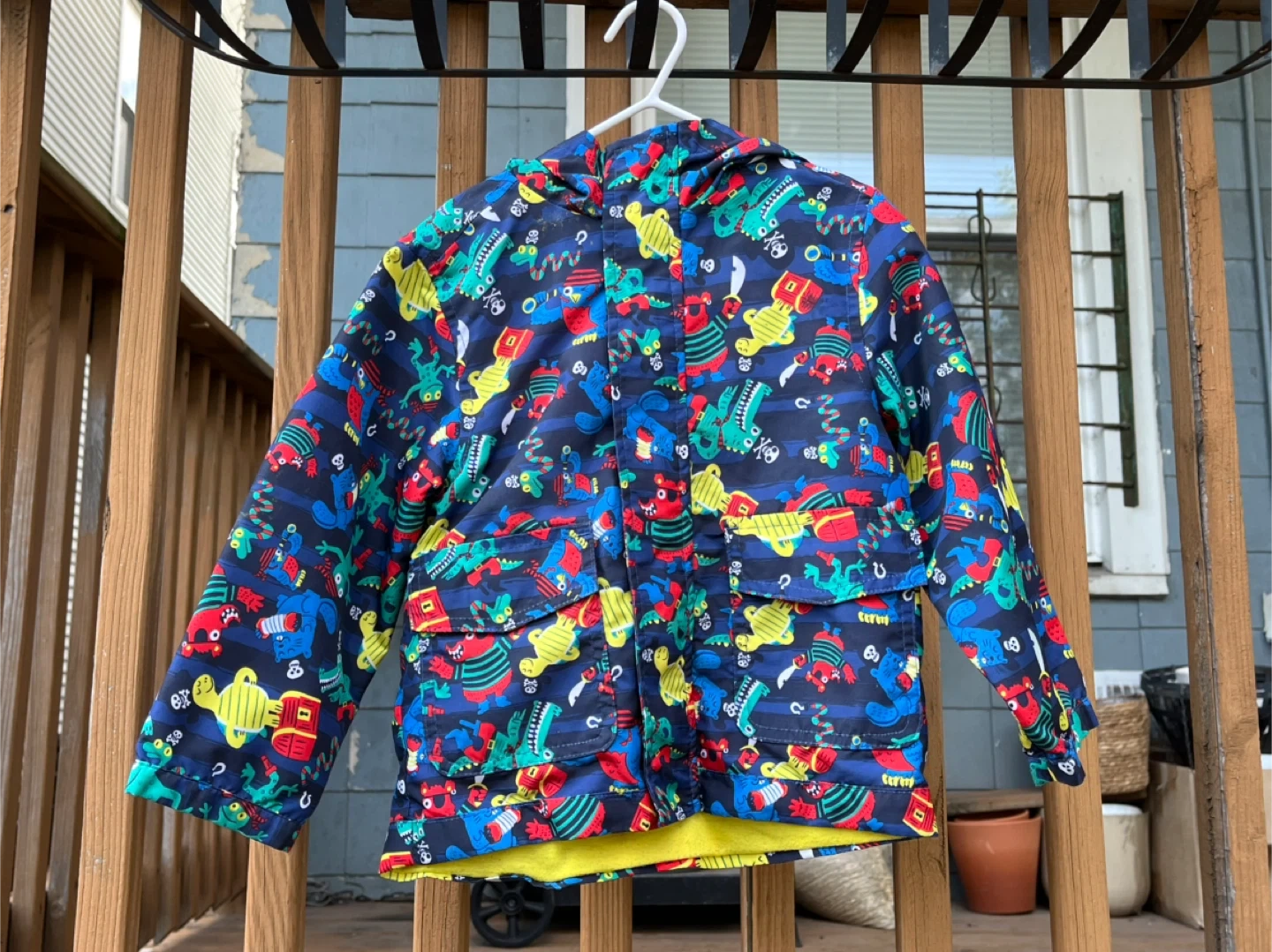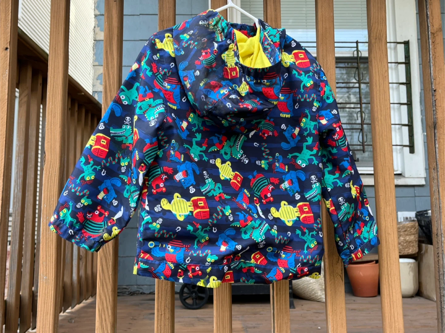 This boys' jacket features a playful alligator design in bright and cheerful colors! It's perfect for keeping your little one warm and dry on cooler days. The jacket has a hood and pockets, making it both practical and stylish