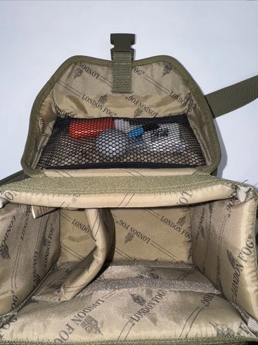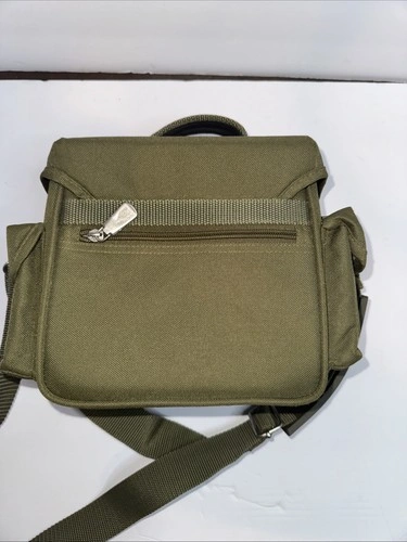 65The London Fog Camera Case by BAG is a durable and stylish carry/shoulder bag in olive green, perfect for securely holding a camera. Made of canvas material, this case features padded compartments to protect the camera and accessory slots for easy organization. The included strap adds convenience for easy transport, making it a practical and fashionable choice for photographers on the go. With dimensions of 10.5”x5”x8”, this camera case is the ideal size to fit most cameras comfortably.