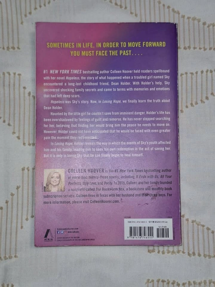 90Immerse yourself in the pages of "Losing Hope," a novel that has captivated the hearts of young and old alike. Written by bestselling author Colleen Hoover, this first paperback edition is a testament to the power of narrative fiction to connect with readers. Published in 2013 by Atria Books, this book offers a heartwarming journey sure to resonate with anyone who appreciates a good story. Produced in English for a general audience, this book is a product of the United States and has not been signed or inscribed, ensuring it remains a pristine copy for all to enjoy. Whether you're looking to add to your collection or searching for a novel that speaks to the human experience, "Losing Hope" is a compelling choice.