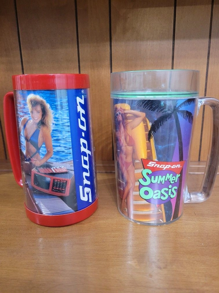 60Lot of 2 SNAP-ON TOOLS Vintage Thermo-Serv Tool Girl Plastic Mug Calendar girls