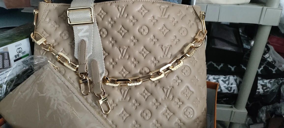 21Selling a beautiful Louis Vuitton shoulder bag! It's in great condition and comes with its original dust bag. The bag features a stylish chain and a lovely beige color that goes with everything. Perfect for adding a touch of luxury to any outfit!