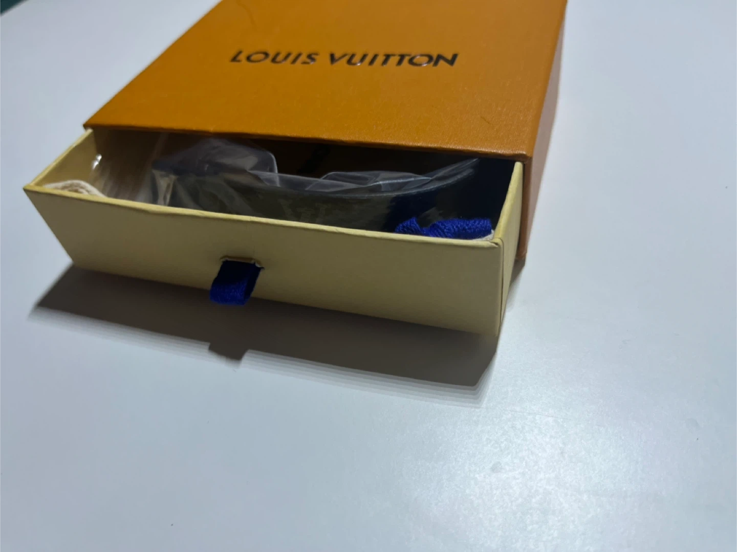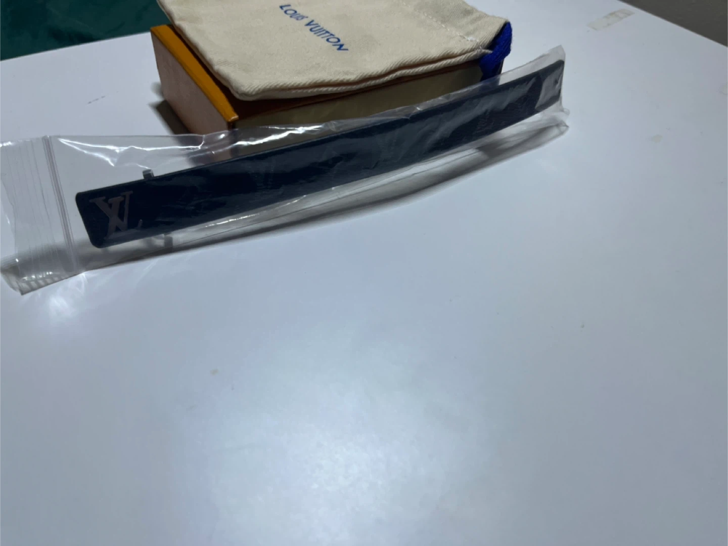 Selling a Louis Vuitton black leather slim bracelet in size 21. It's in great condition and comes with the original box and dust bag