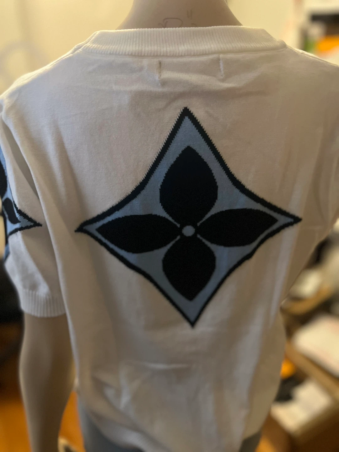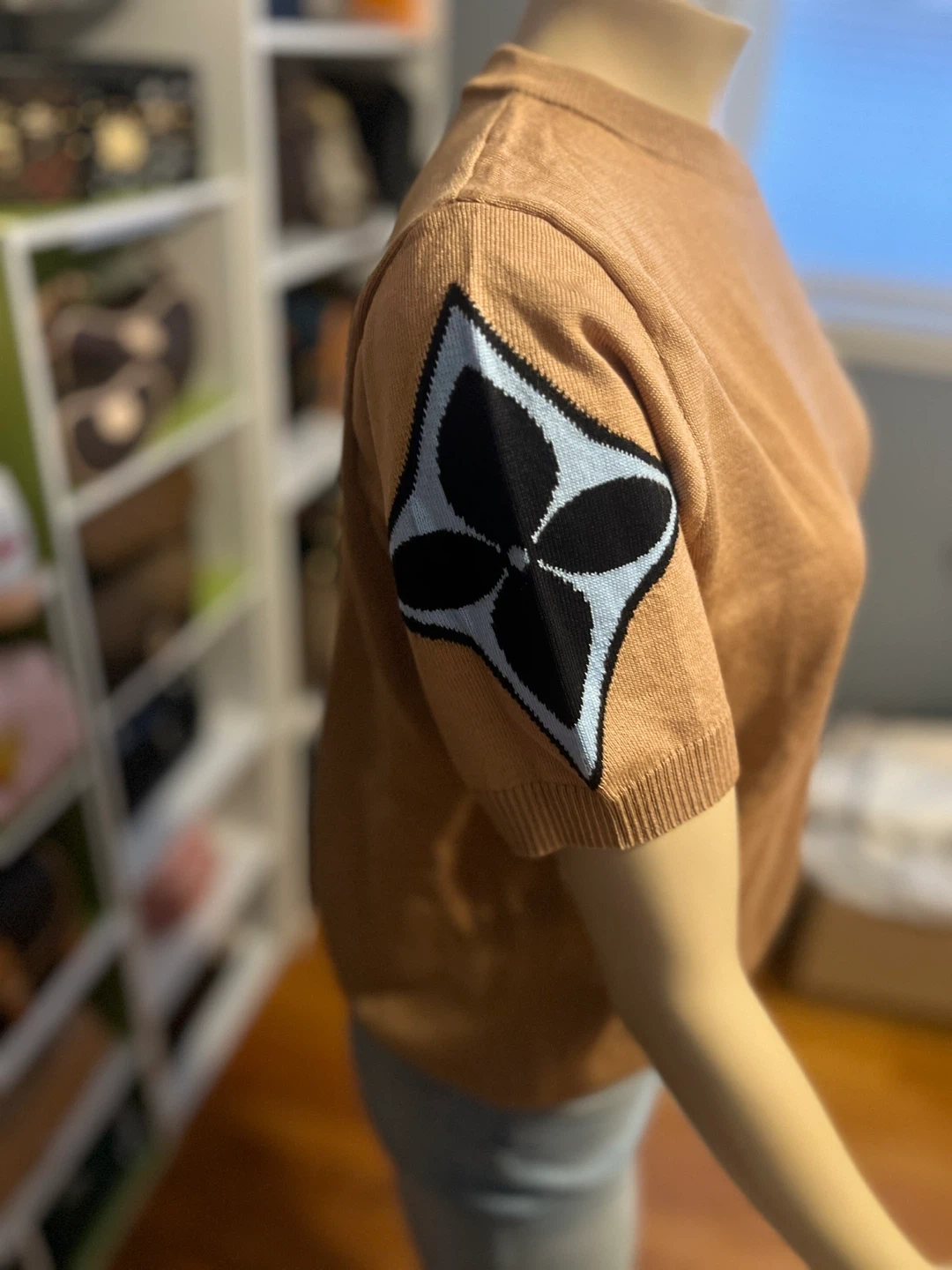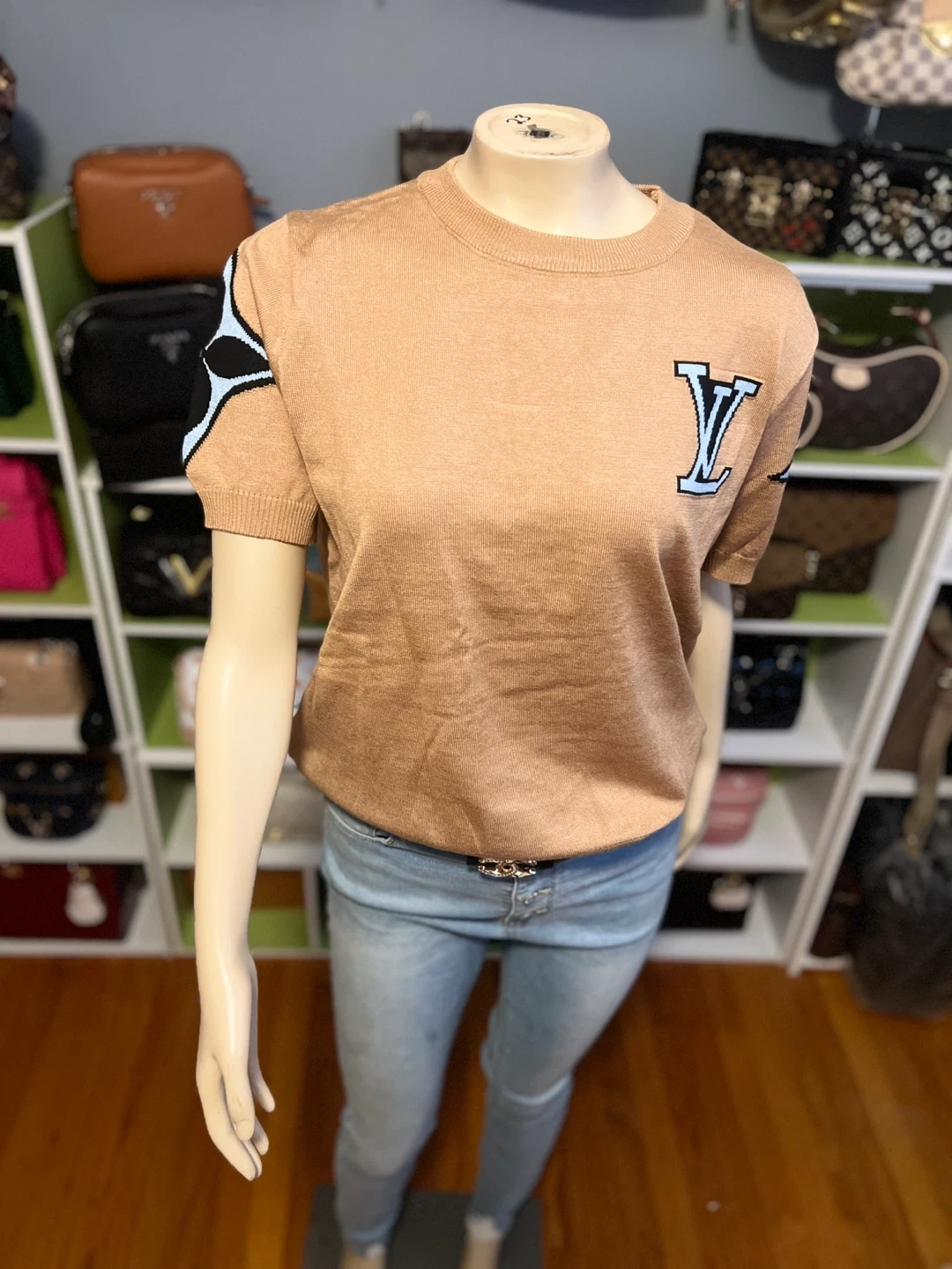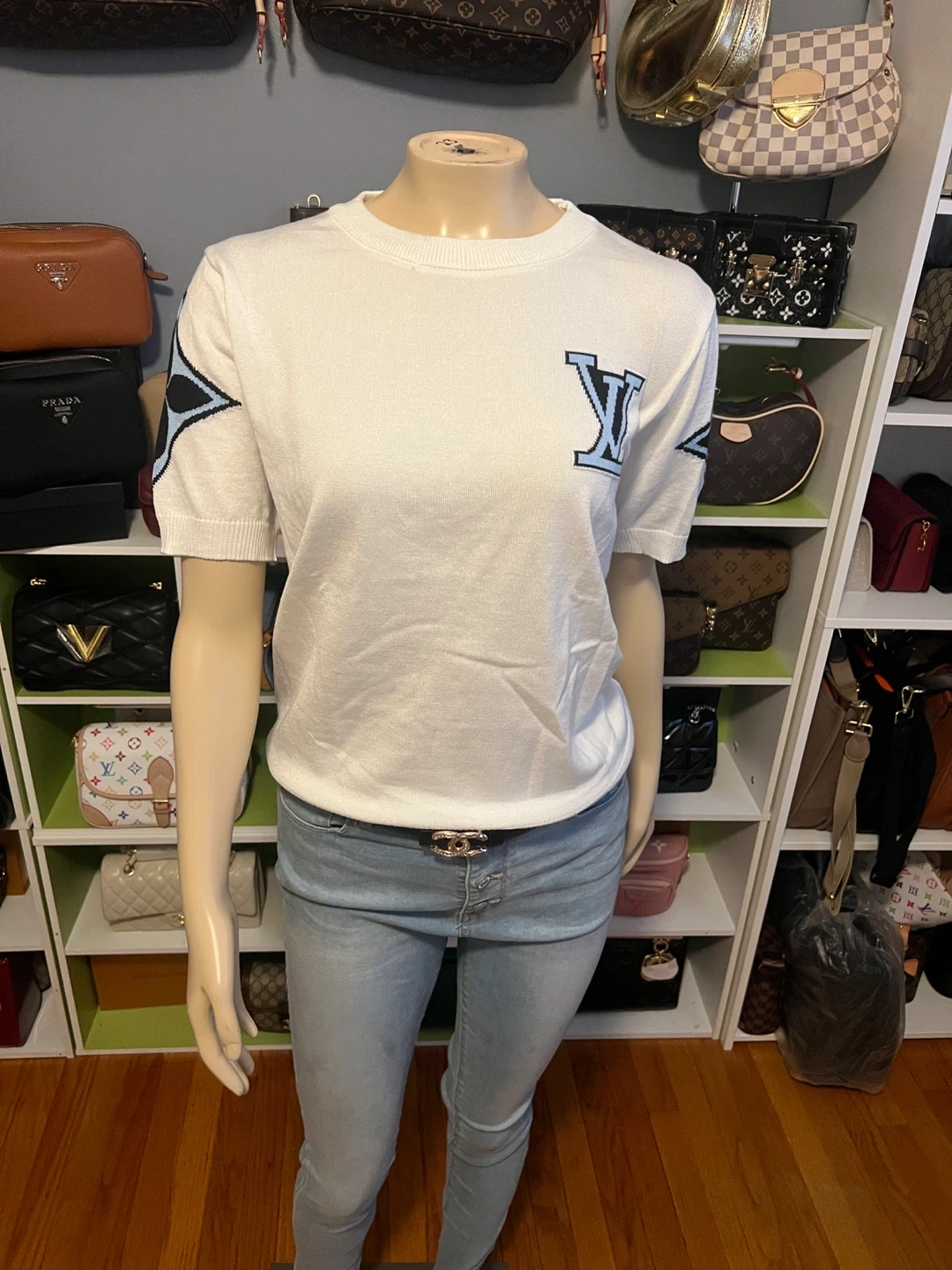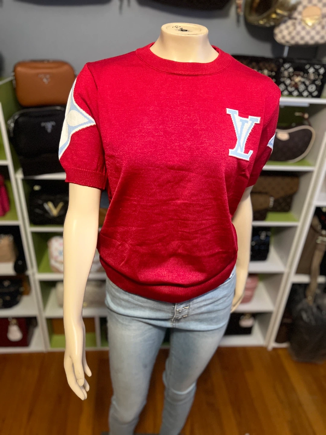 Selling this Louis Vuitton knit top! It features the iconic LV logo and a unique design on the sleeves and back. Available in multiple colors. Fits M-XL