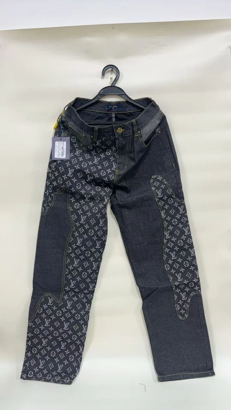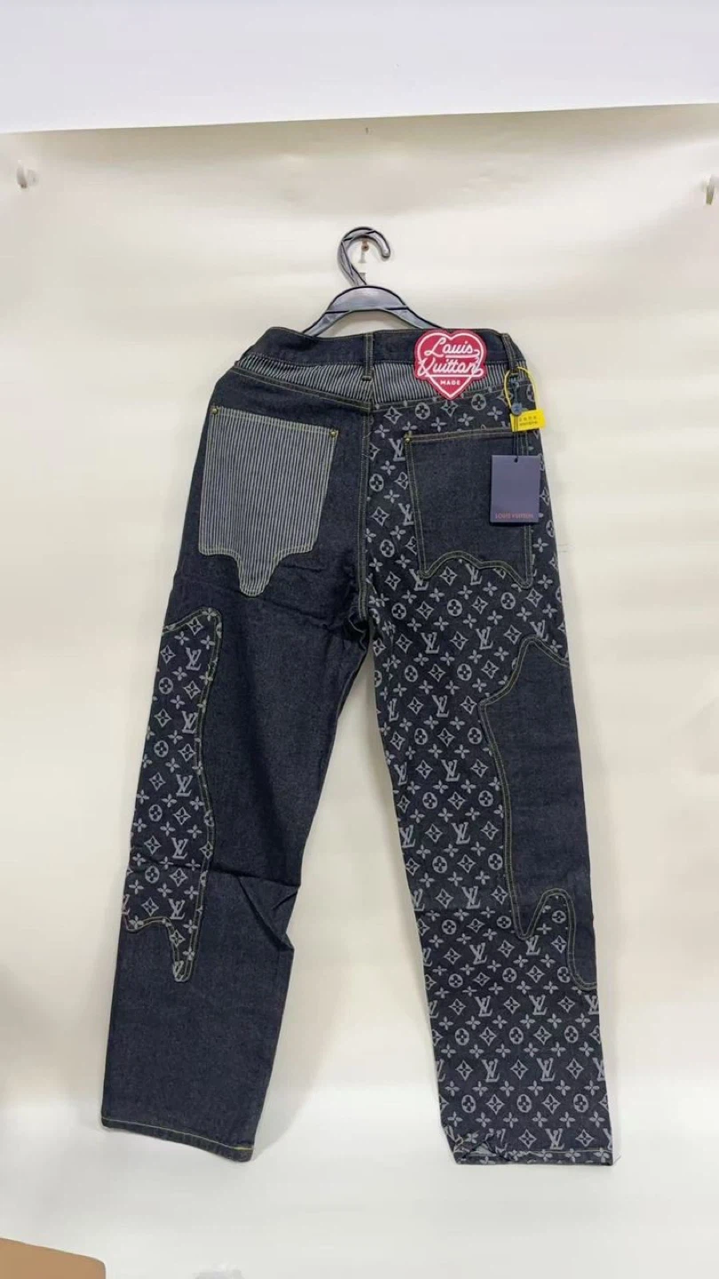 Selling a pair of Louis Vuitton denim jeans with the iconic monogram pattern. These jeans feature a unique design and are made with high-quality materials. They are in great condition and ready for a new home!