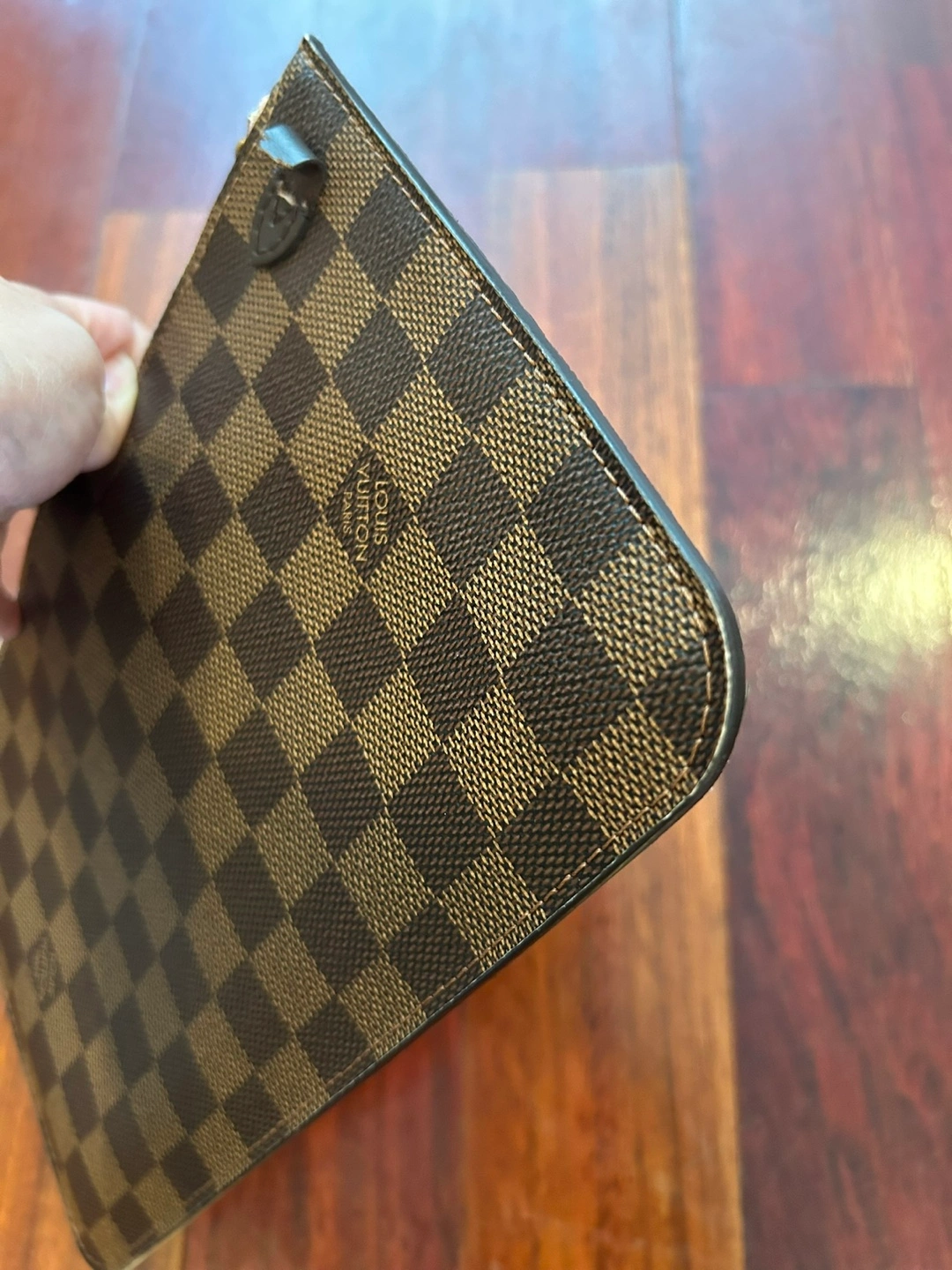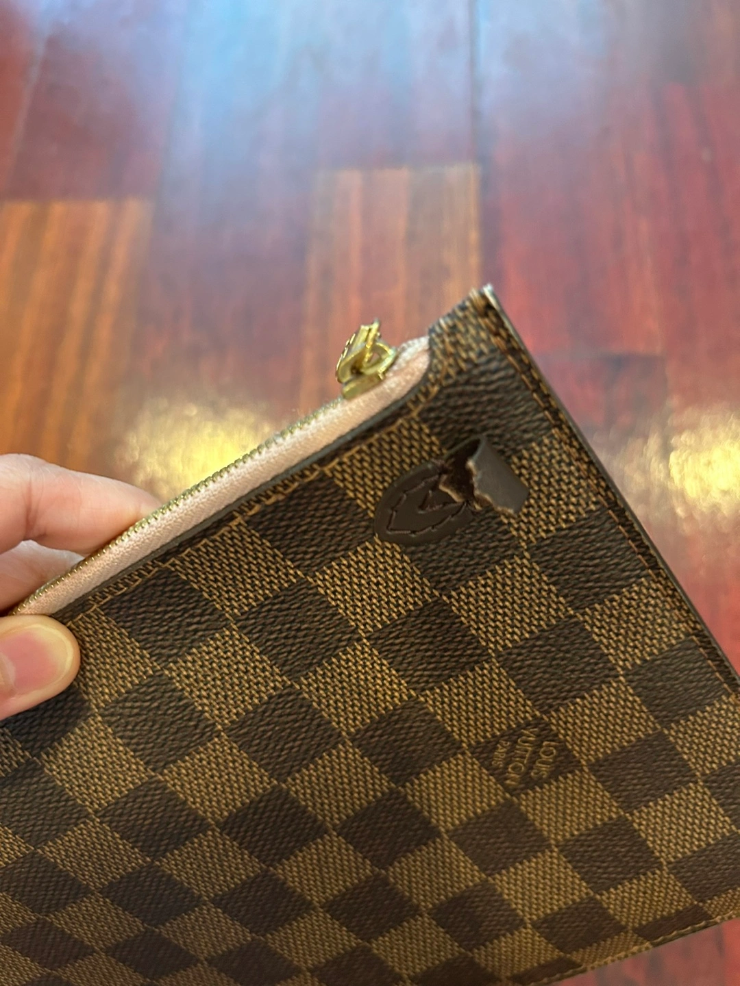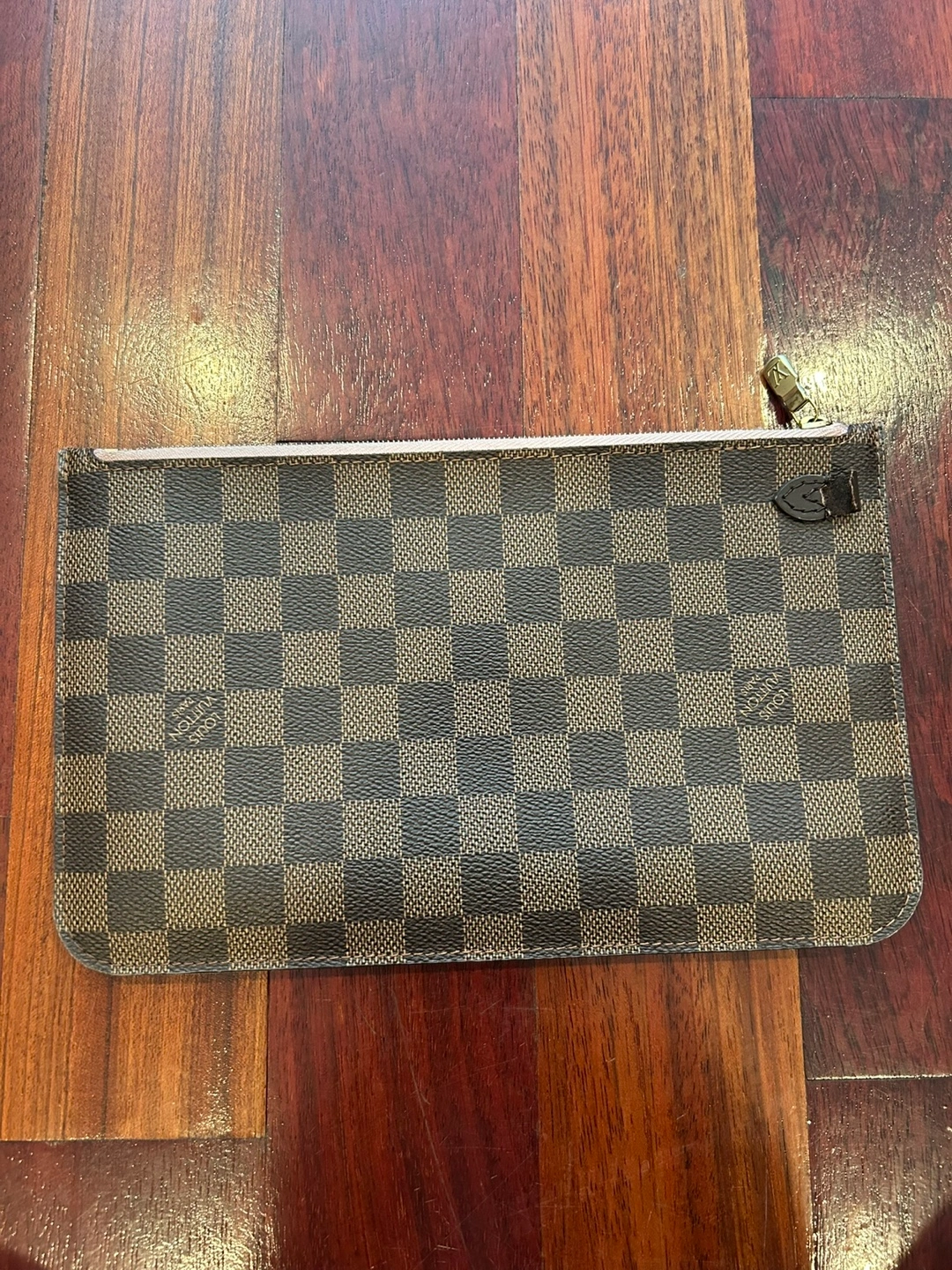 Selling a Louis Vuitton Neverfull MM Damier Ebene wristlet/pouch. It's in good condition except for the small leather part that's ripped and without strap. It has been authenticated by Authentic Detective with a certificate of authenticity. The issue date on the certificate is Dec 08, 2023 Will meet only at Bolingbrook Police parking lot Price is firm
