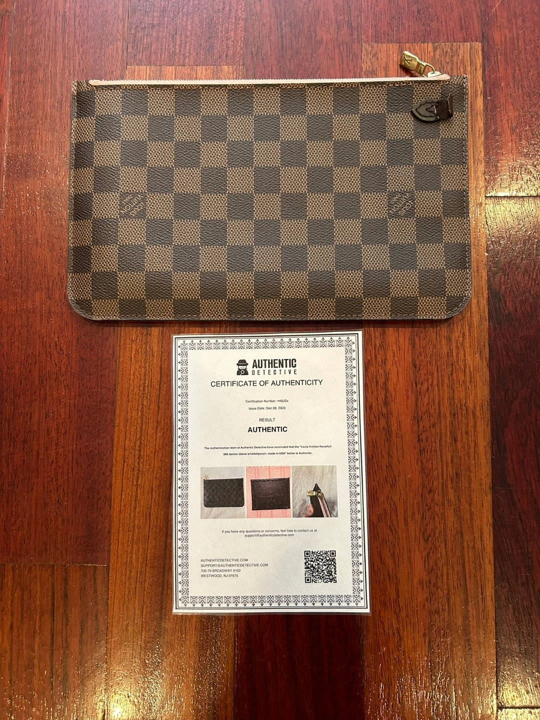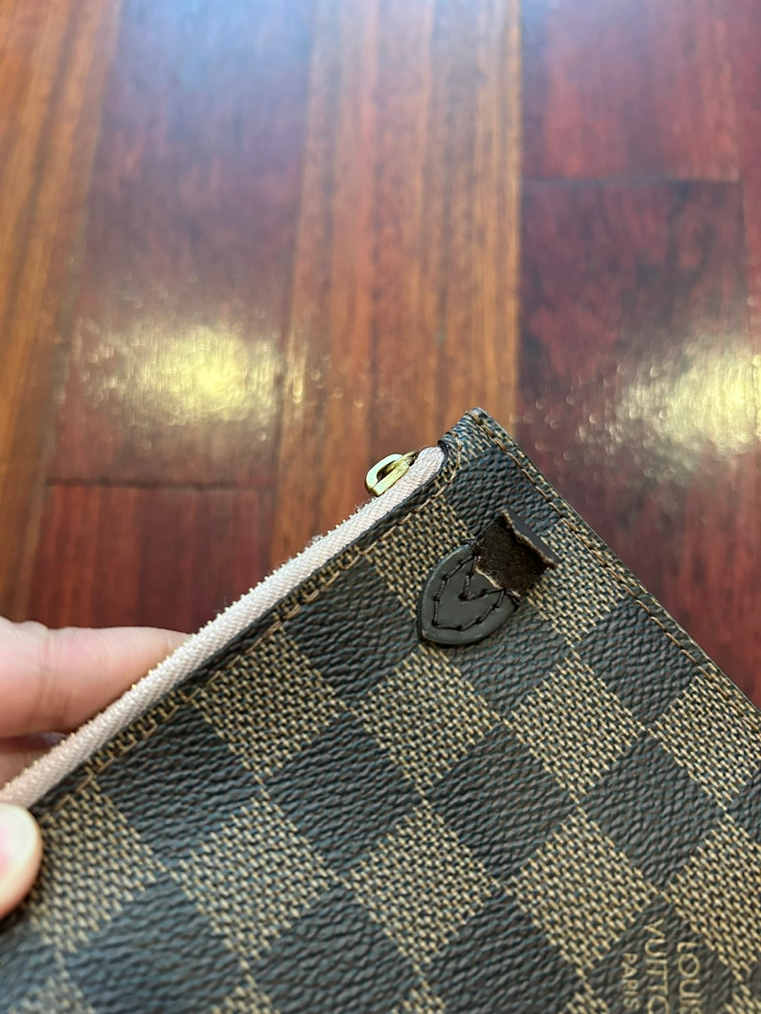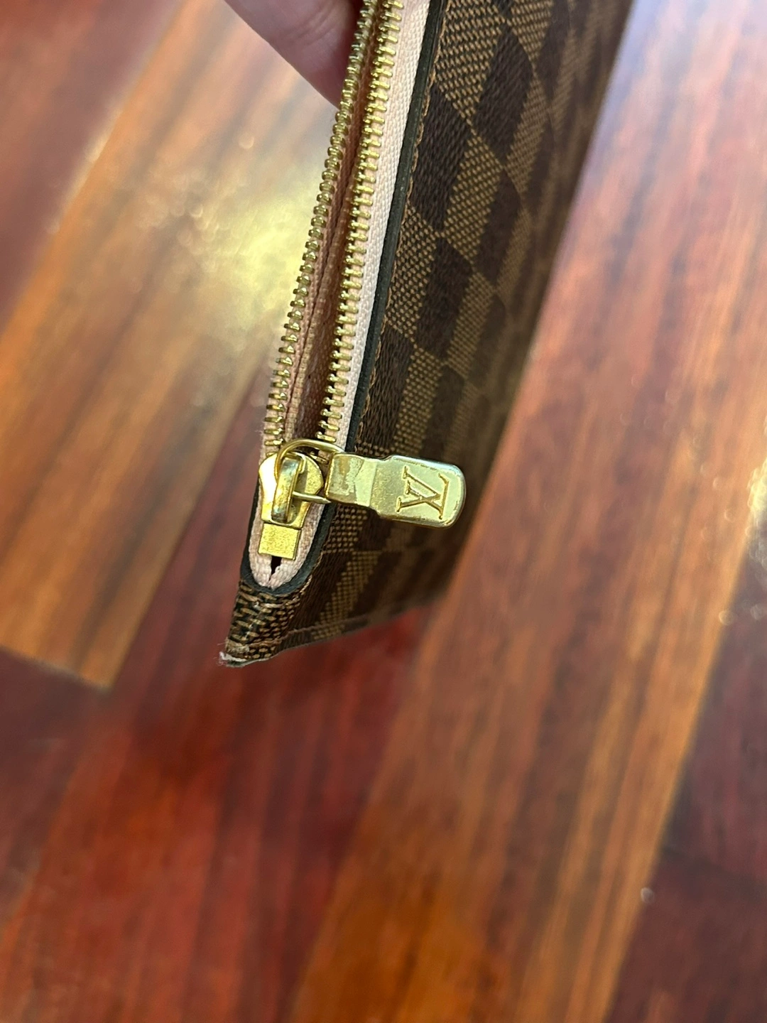 Selling a Louis Vuitton Neverfull MM Damier Ebene wristlet/pouch. It's in good condition except for the small leather part that's ripped and without strap. It has been authenticated by Authentic Detective with a certificate of authenticity. The issue date on the certificate is Dec 08, 2023 Will meet only at Bolingbrook Police parking lot Price is firm