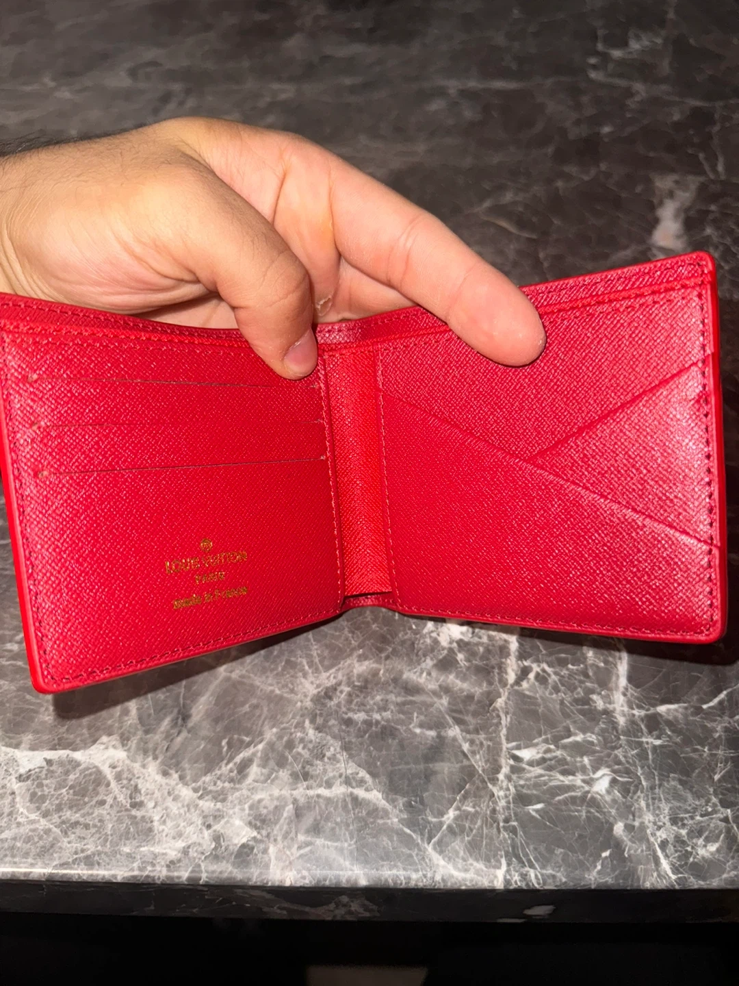 Selling a Louis Vuitton x Supreme wallet in red Epi leather! It's in great condition and comes with the original Louis Vuitton box. This stylish wallet is perfect for keeping your cards and cash organized with a touch of luxury.
