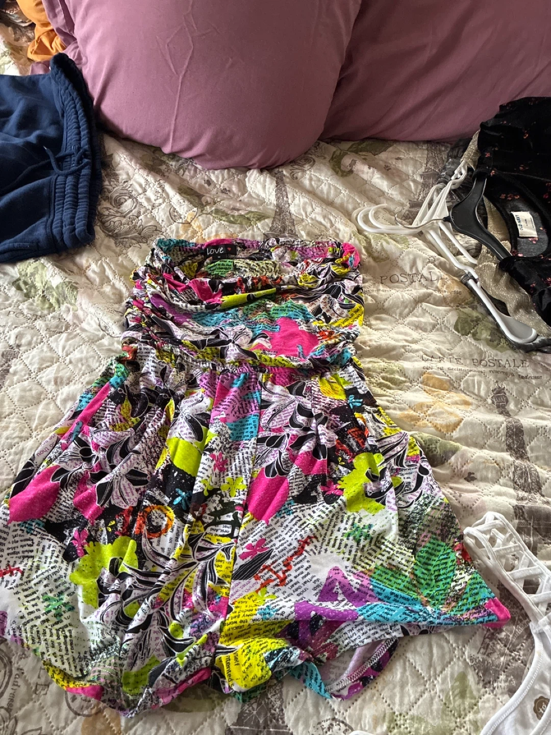 Selling a cute and colorful romper from the brand Love! It's a size medium and features a vibrant, eye-catching print. Perfect for summer days or a fun night out