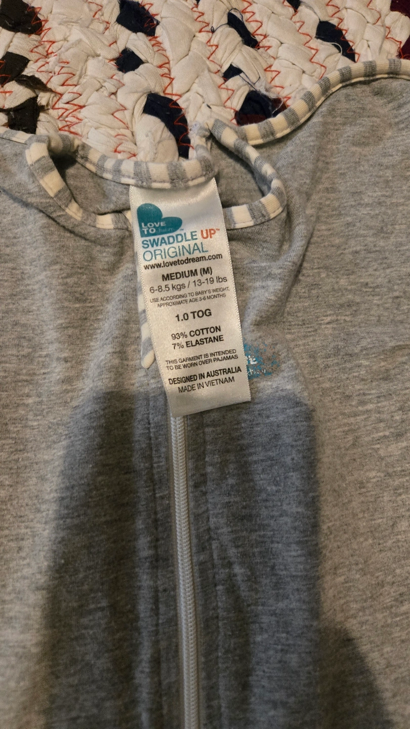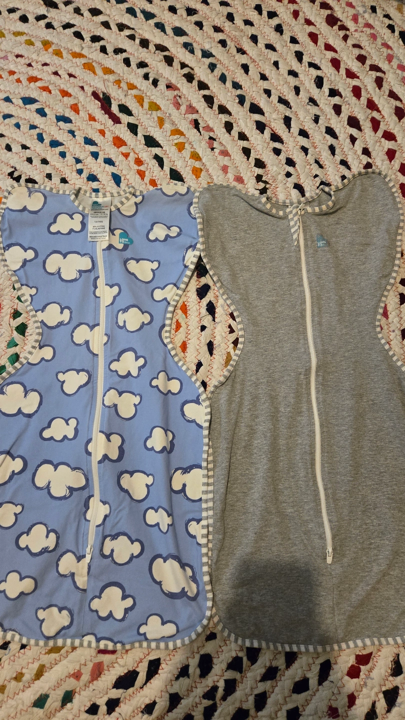 Two Love To Dream Swaddle UP Original sleep bags. One gray and one blue cloud print. Size Medium (6.8-13.1 lbs). 1.0 TOG. The blue one is practically new and $25. $40 for both.