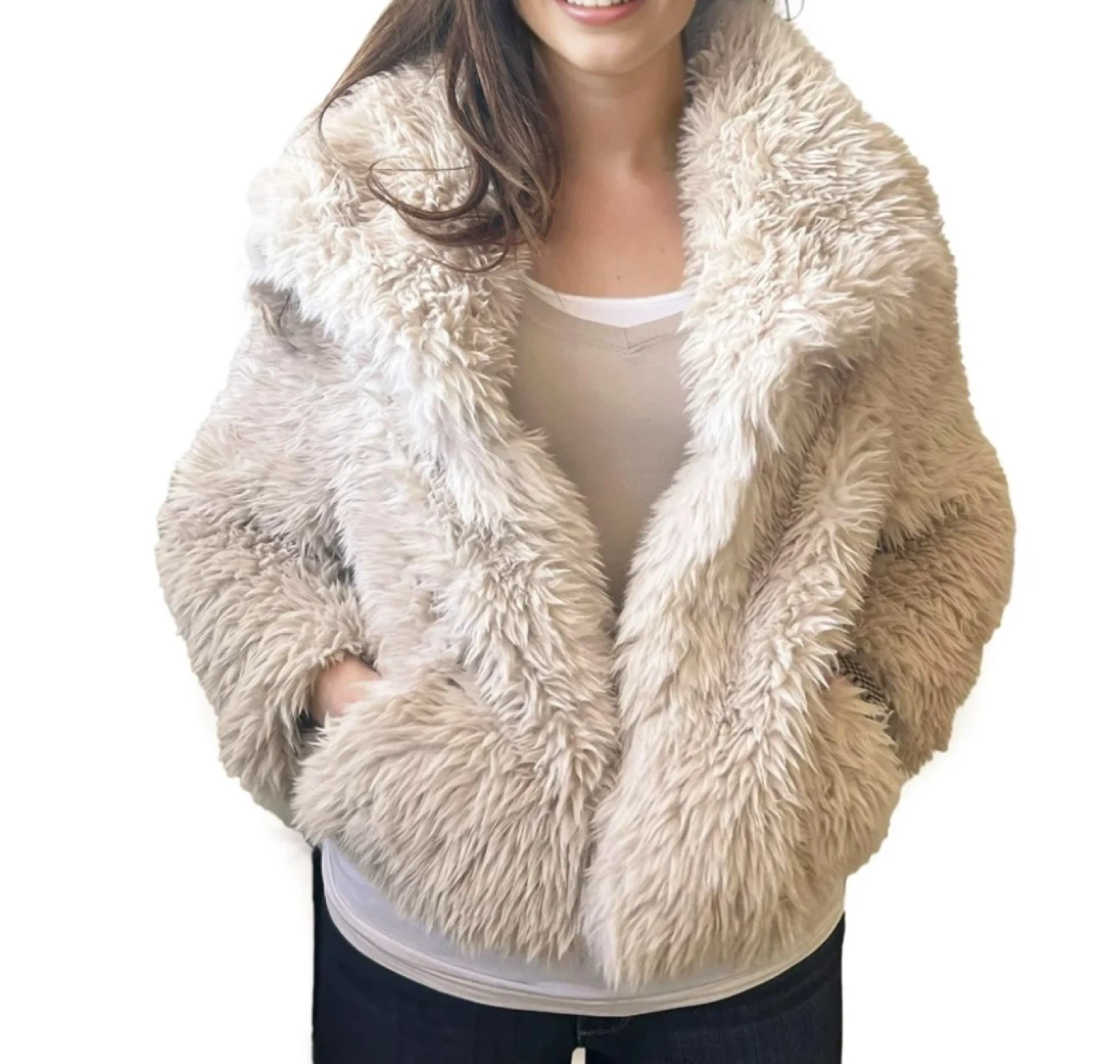 Love Tree White Faux Fur Jacket - Size Medium