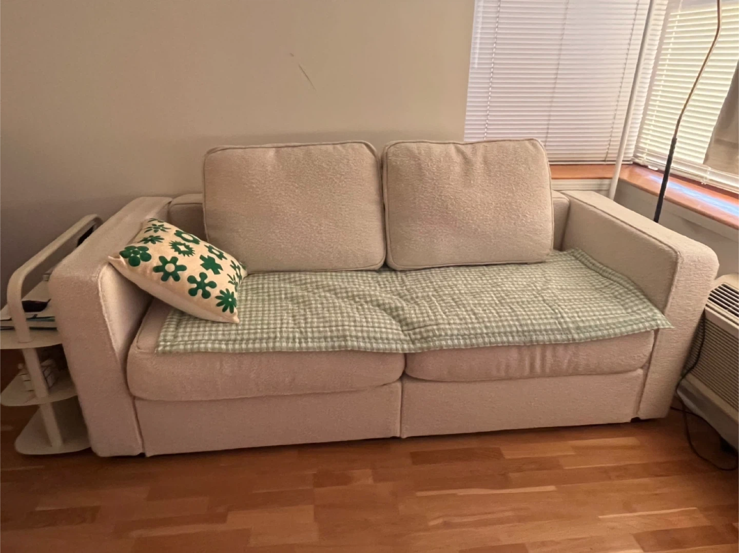 Selling because I'm moving internationally - love this love sac & was purchases less than 3 months ago and barely used (no pet, no kids, no smokers) White boucle, fully assembled; msg for offers and more pictures Pick up at my apt