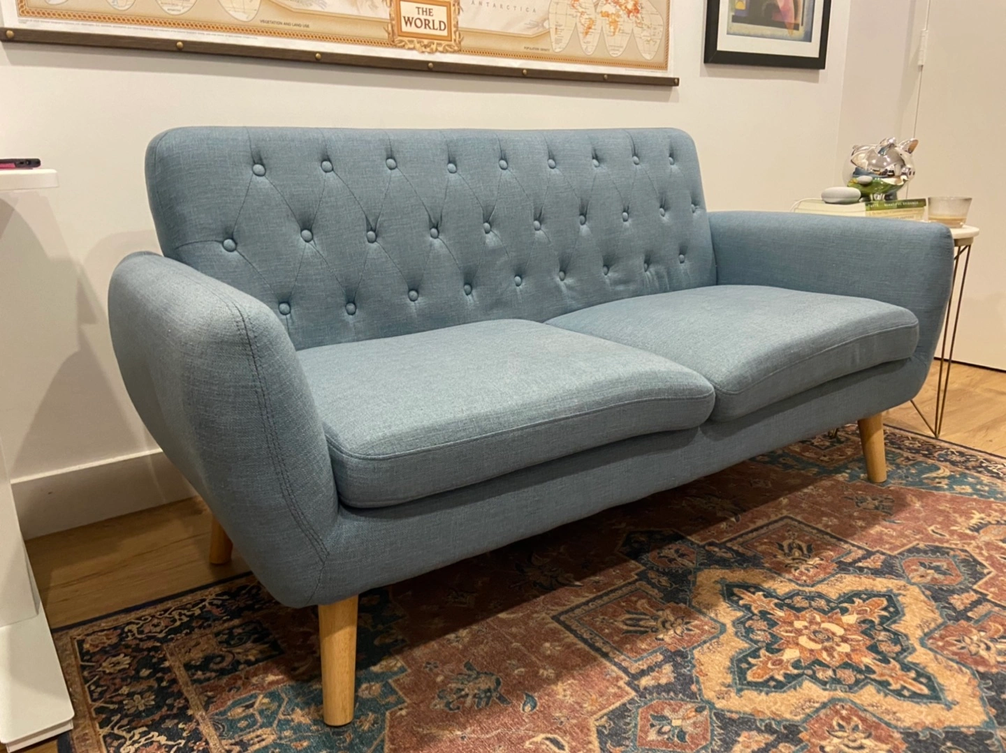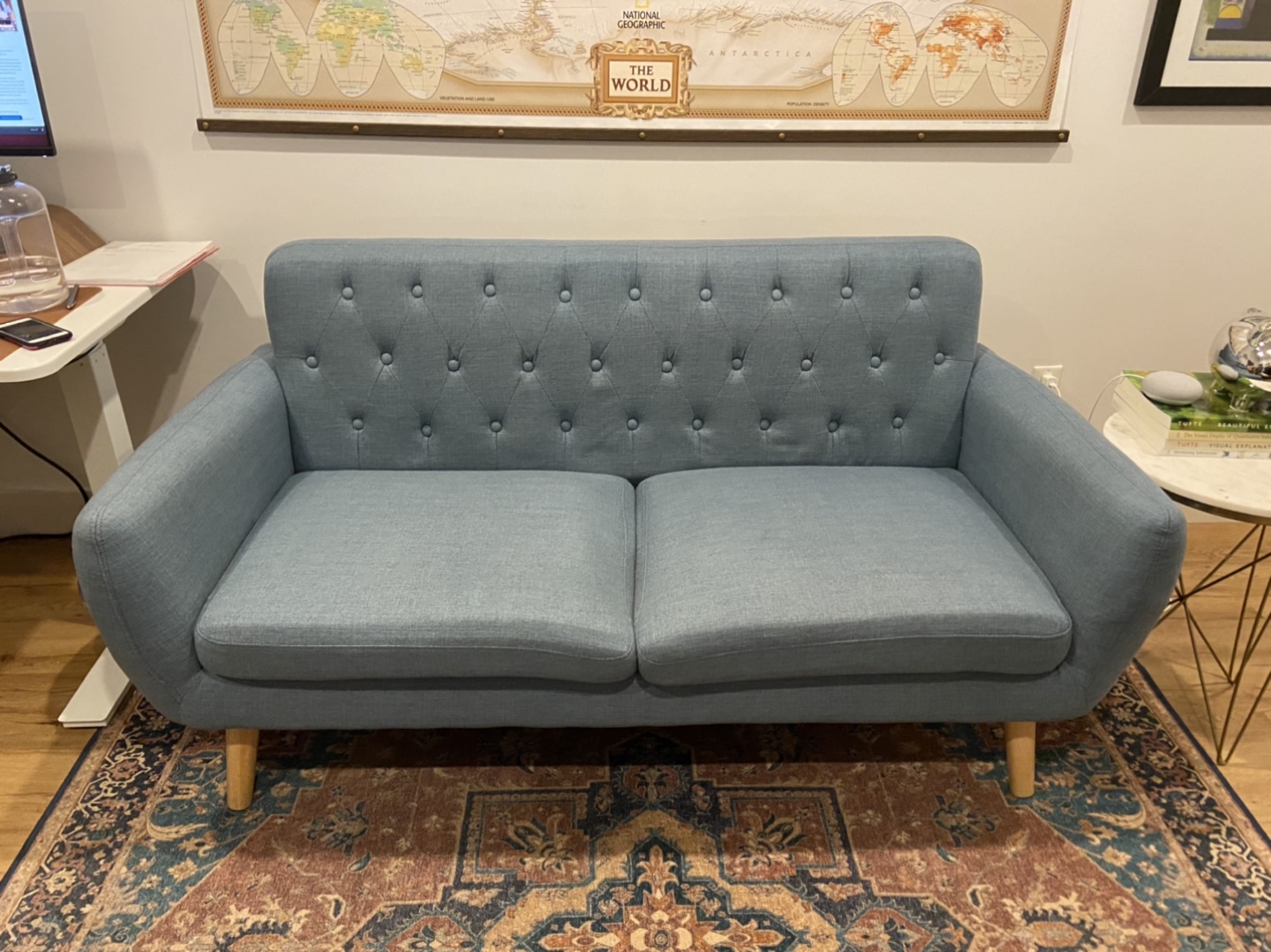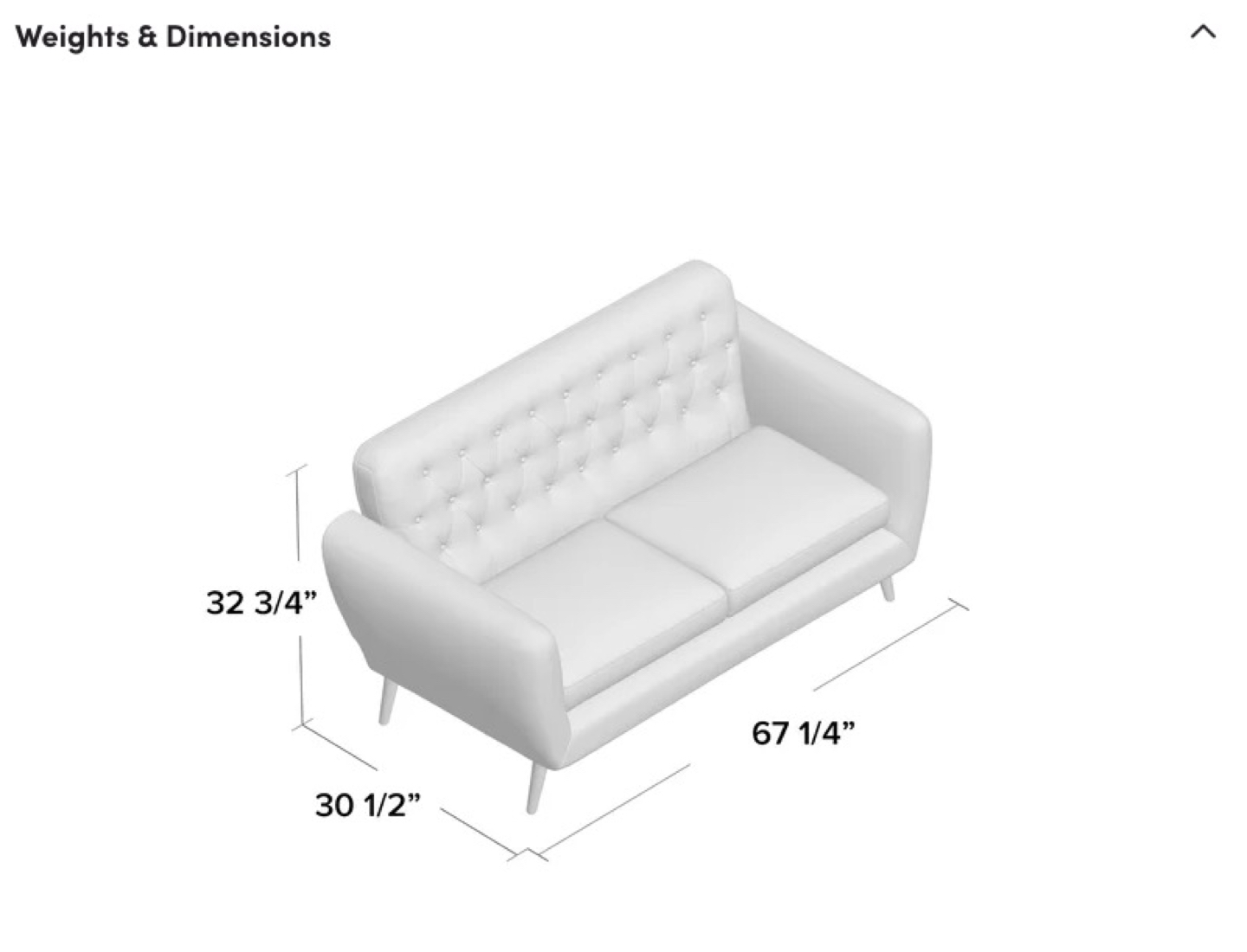 0Pre-loved loveseat with length 30.5 inches, width 67.25 inches, and height 32.75 inches. Can seat up to 3 people comfortably. Great condition! Lightly used for 1 year. Selling because we’re moving. Cushions, legs, and back can be taken off for easier transport. Available for pick-up in East Harlem only.