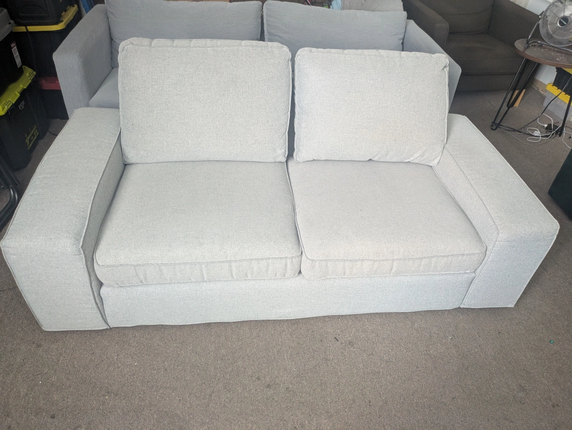 Ikea kivik loveseat Grey Great condition No pets or smoking. No rips or stains Sofa can be taken apart for easy transport and all covers can be cleaned in the washing machine Dimensions are in the pictures I will deliver to your door in the city or suburbs depending on distance