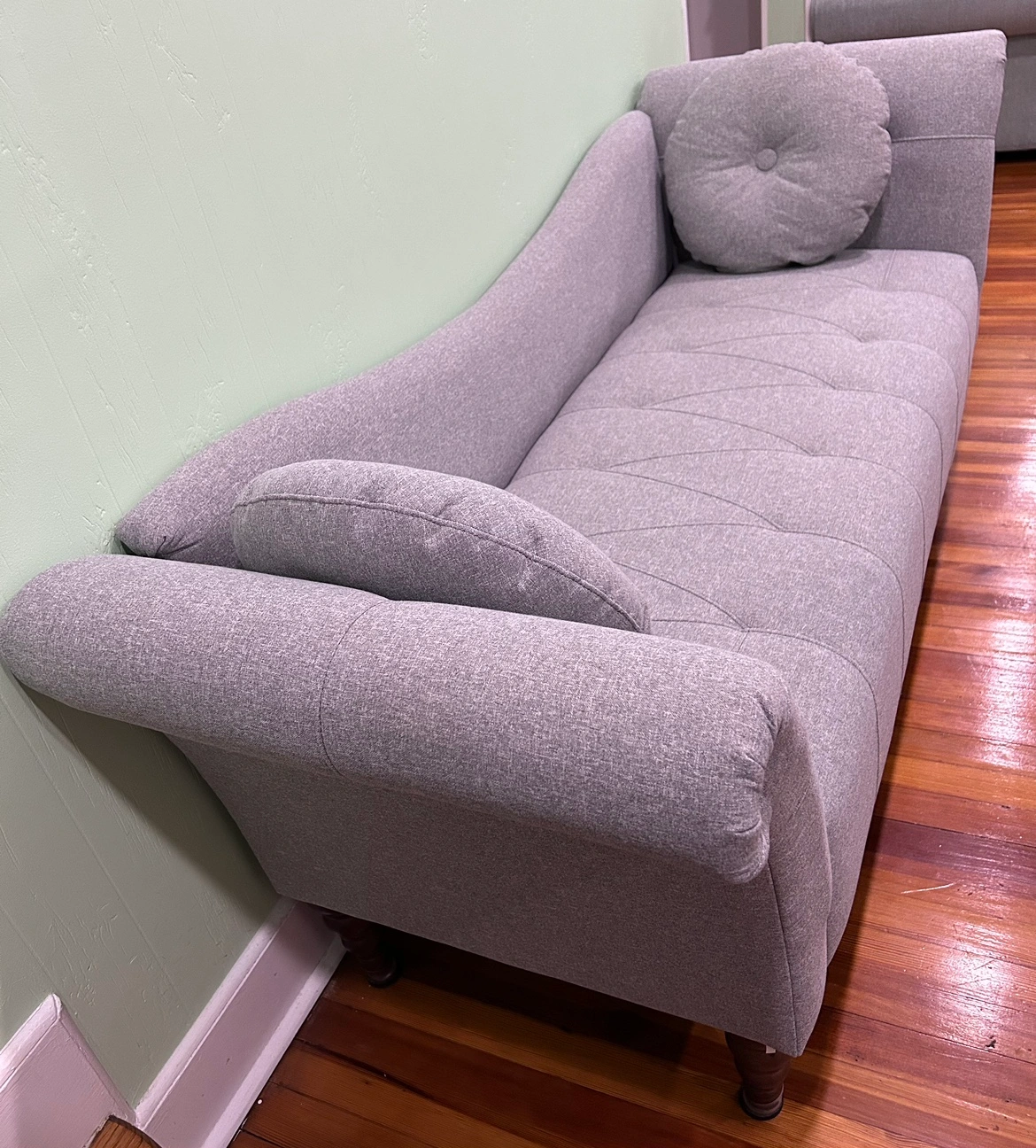 -Must arrange your own pick up/transpiration from Floral Park, NY 11001. -Loveseat Gray color sofa with 2 pillows Gray. -Brand: Wayfair -Price: Negotiable -No pet/non smoker usage. -Good Condition as shown as pictures -No Rips, Stain or other cosmetic defects -Sofa’s dimension available in cover photo
