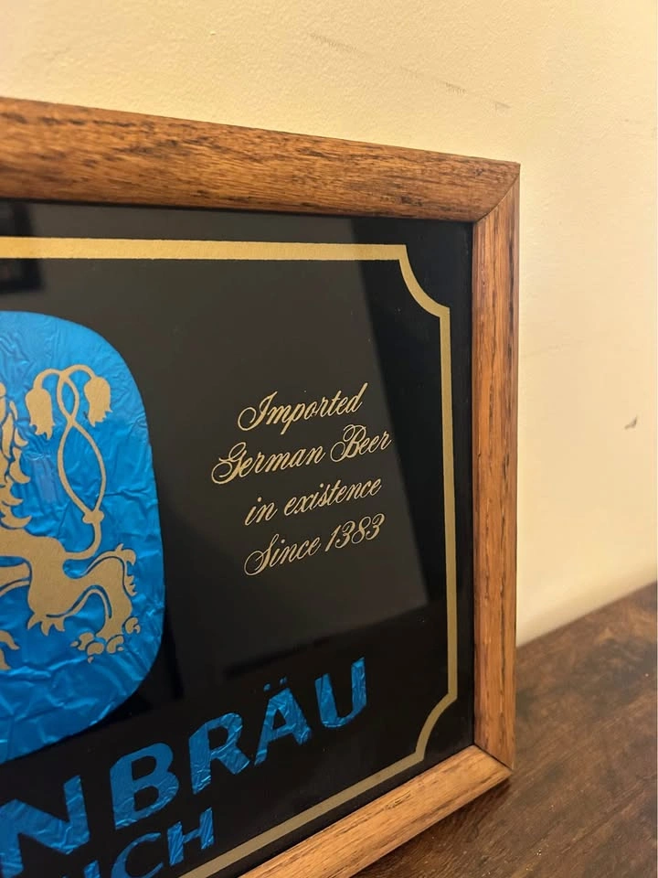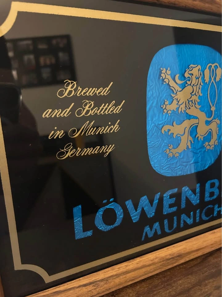 Lowenbrau Munich Sign, looks great behind a bar. Sturdy glass sign with sturdy frame. Located in new Lenox! Let me know if you have any questions or need any more pictures!