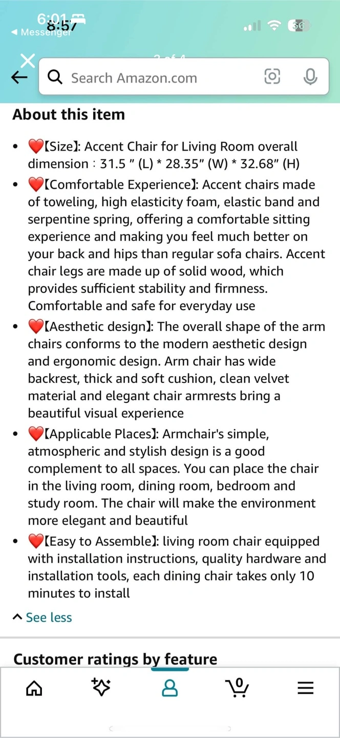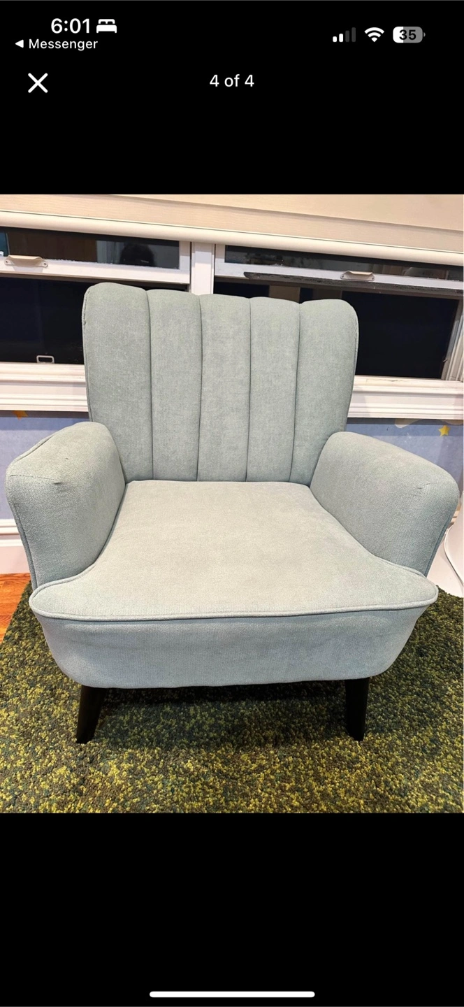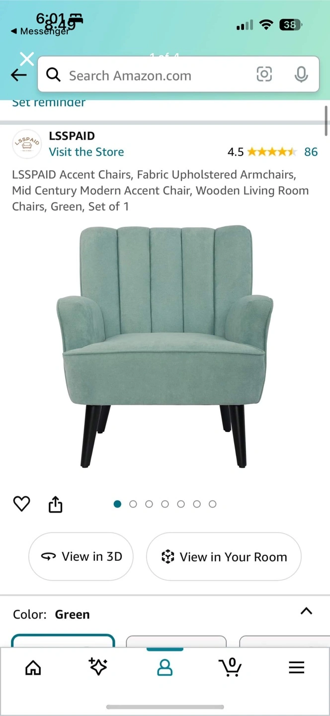 This is a LSSPAID accent chair in green. It's a fabric upholstered armchair with a mid-century modern design. The overall dimensions are 31.5" (L) * 28.35" (W) * 32.68" (H). The legs are made of solid wood, and the chair has a thick and soft cushion.