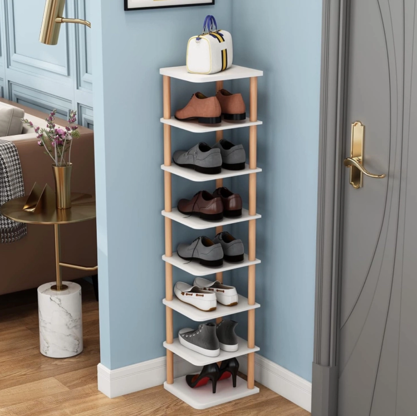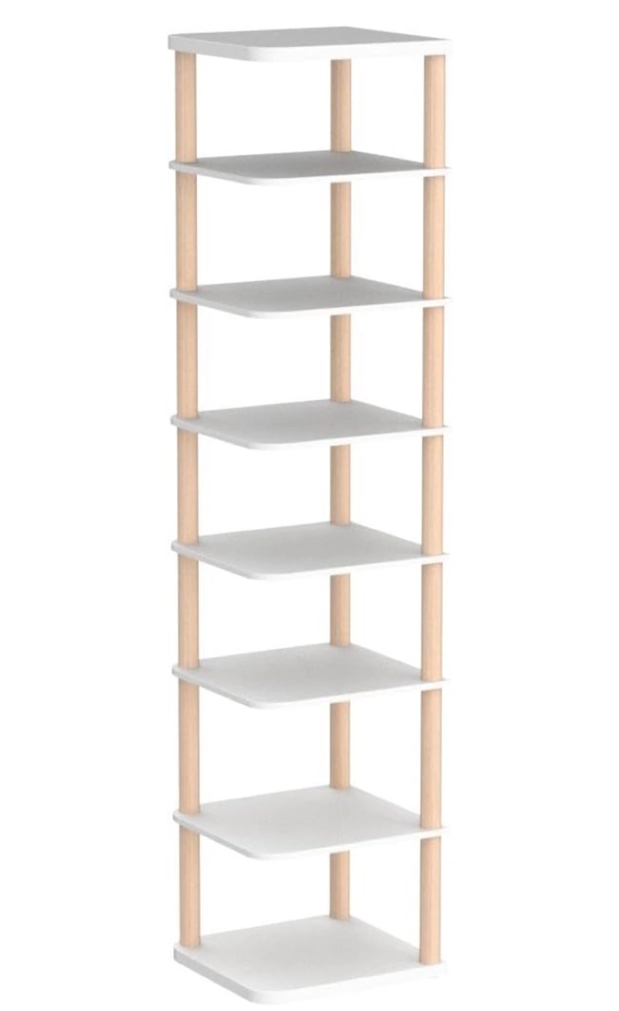 308White shoe rack with wood accents. 6 tiers. Removable shelves. Tool-free assembly. Non-slip pads - New