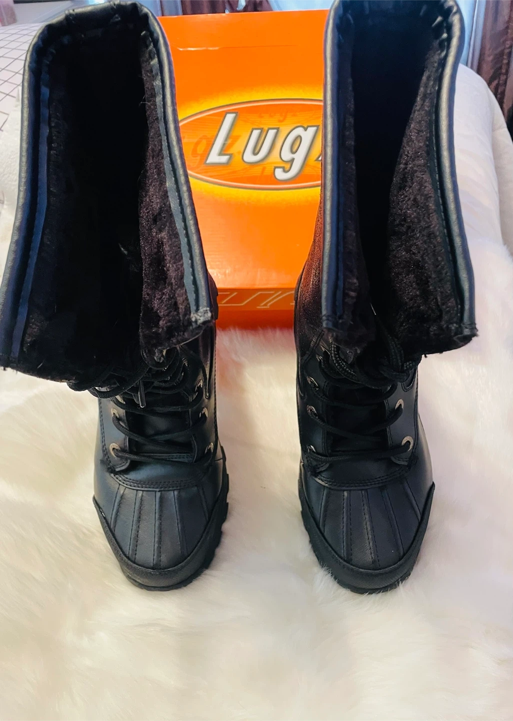 10Selling a pair of Lugz Women's Tambora Boots in black. These boots are in great condition and come with the original box. They feature a lace-up design and a sturdy sole, perfect for winter weather! They are insulated for cold weather and waterproof. Important to know: they provide good traction.