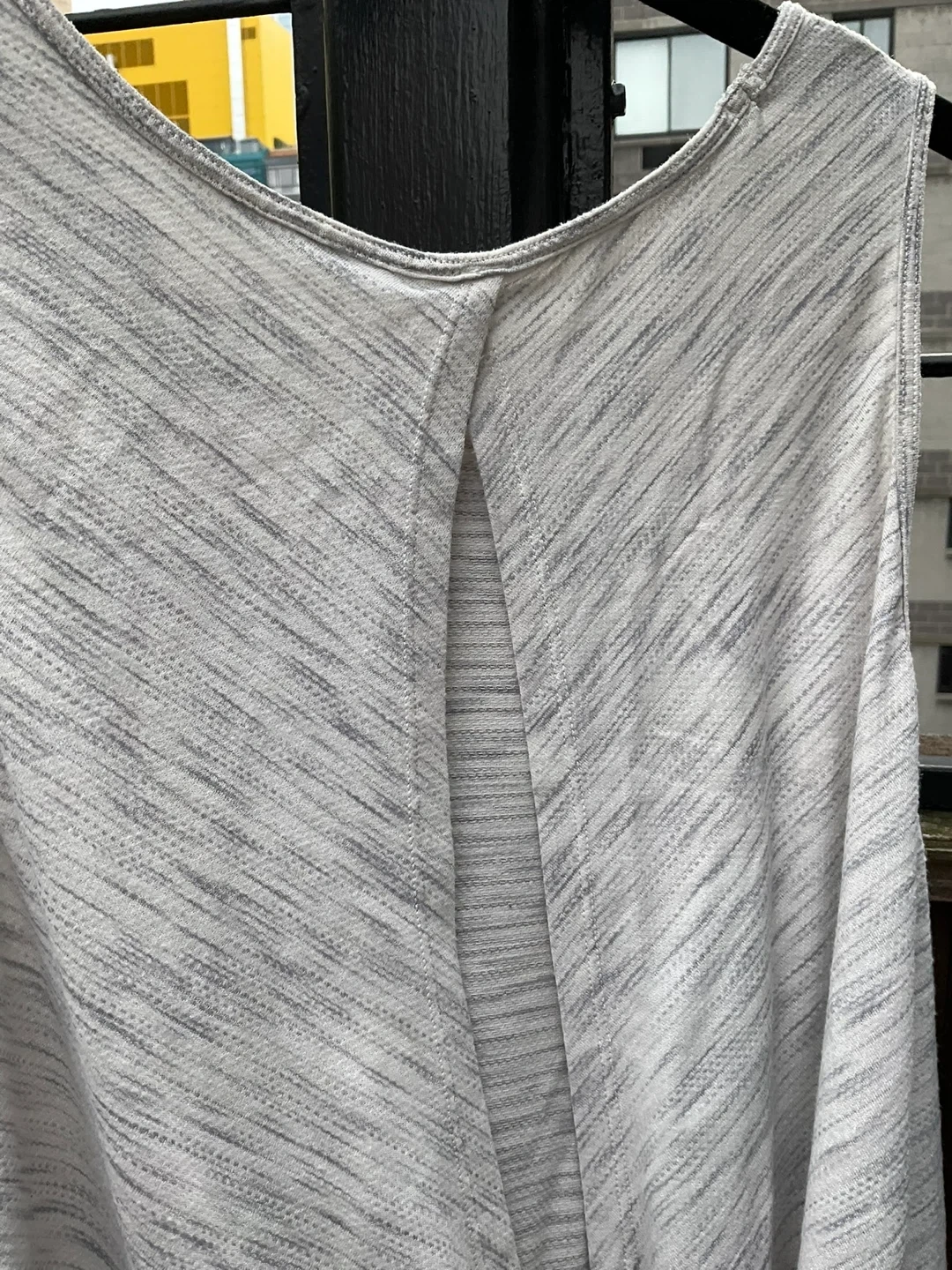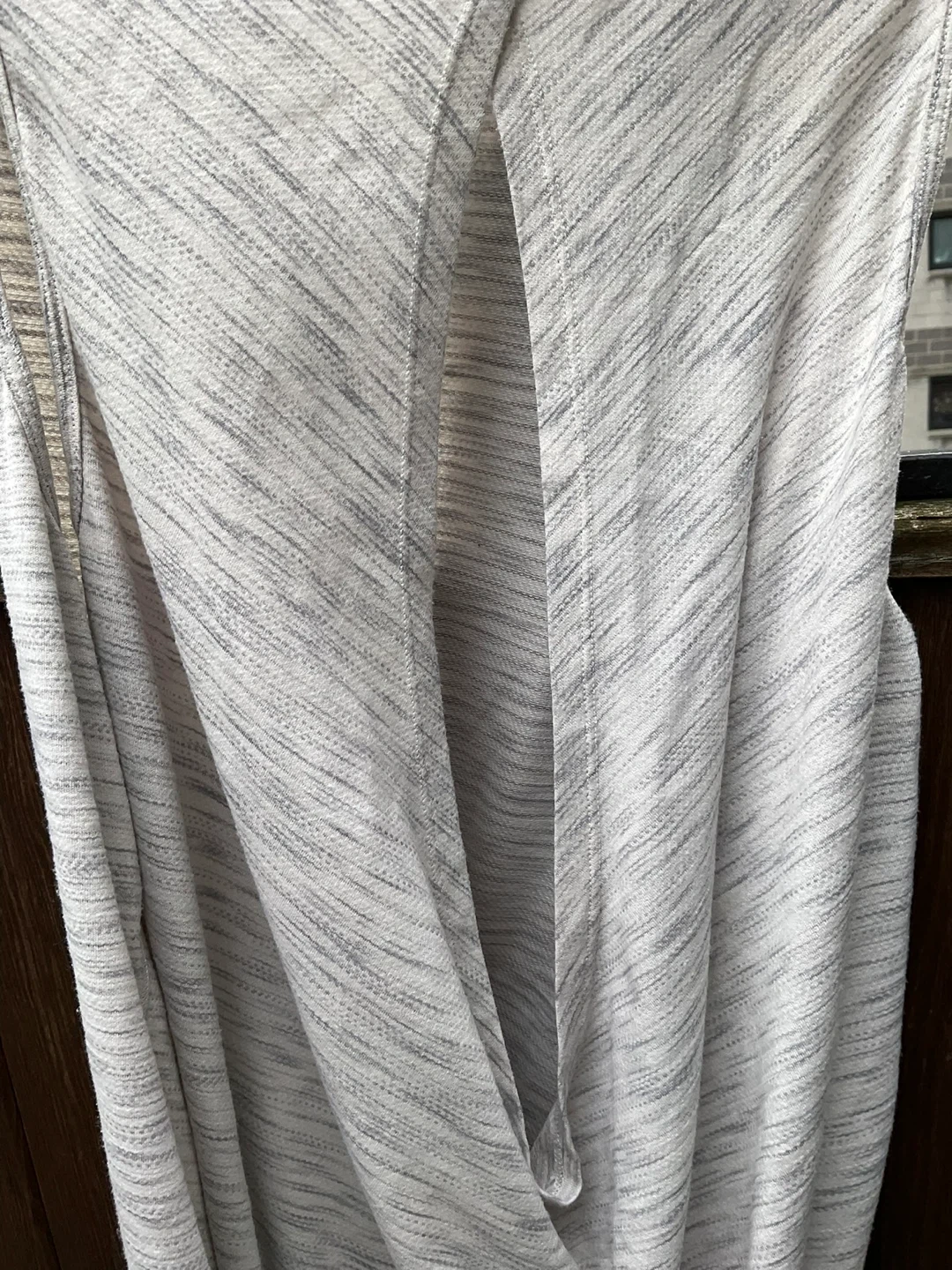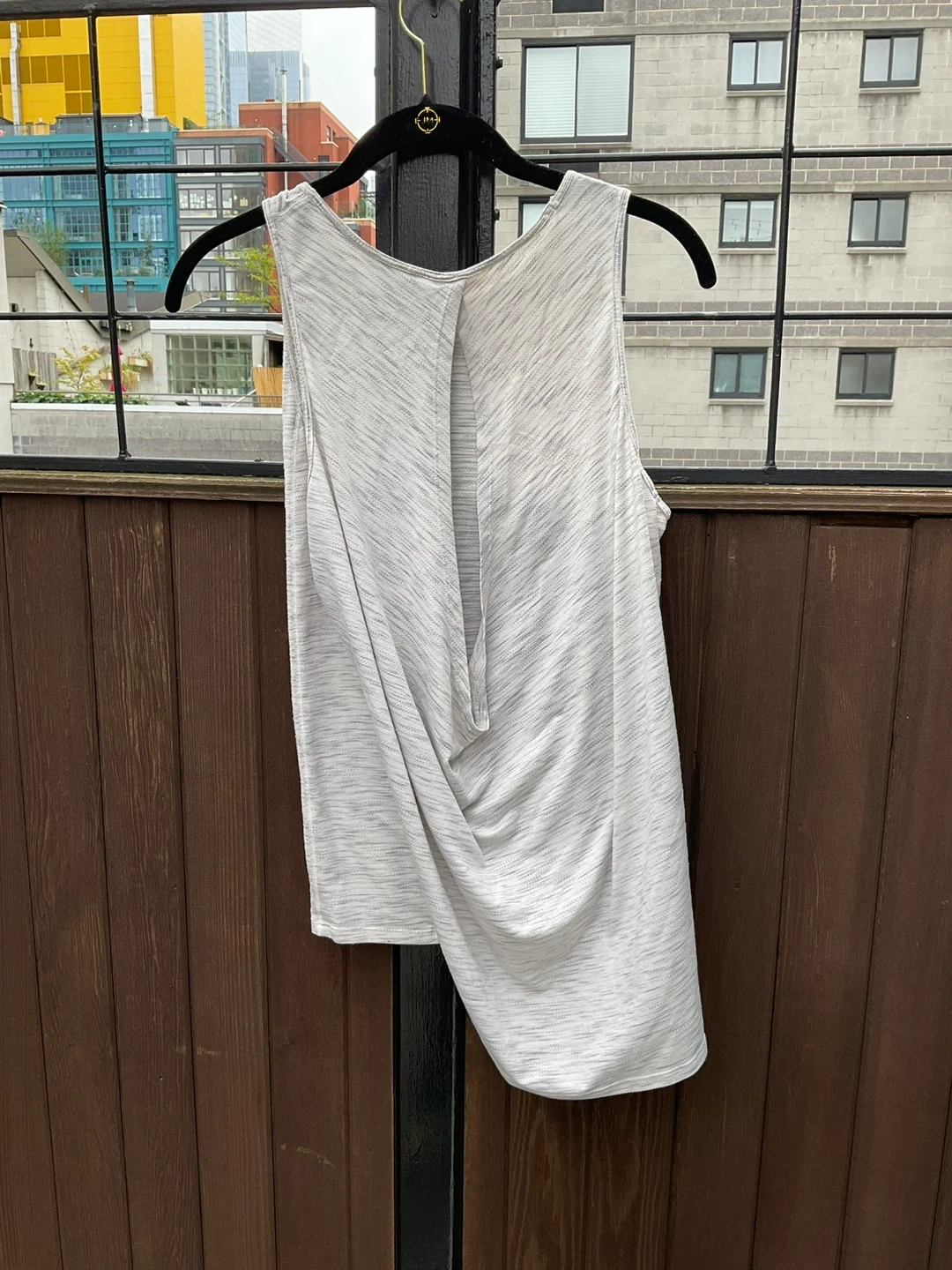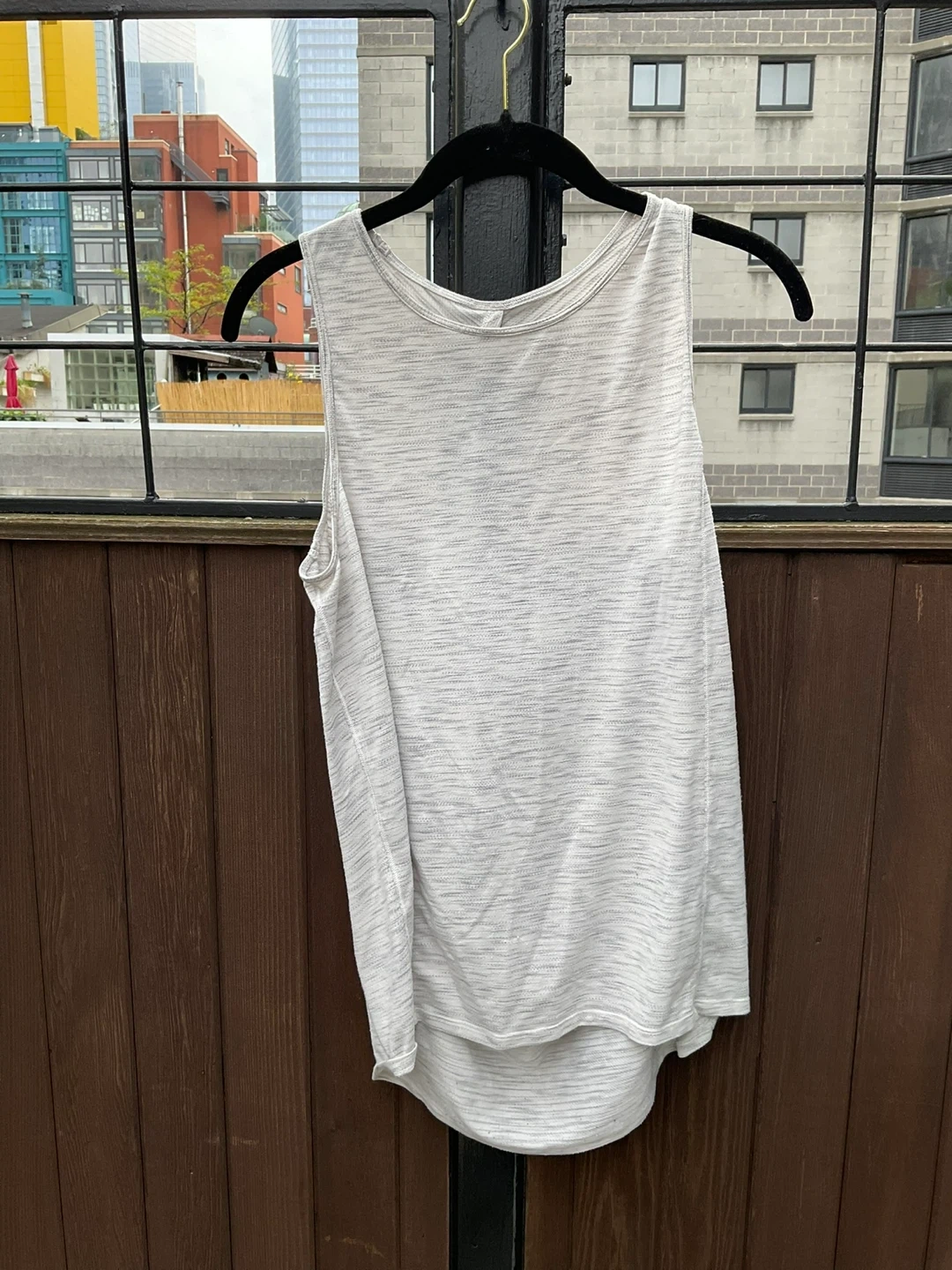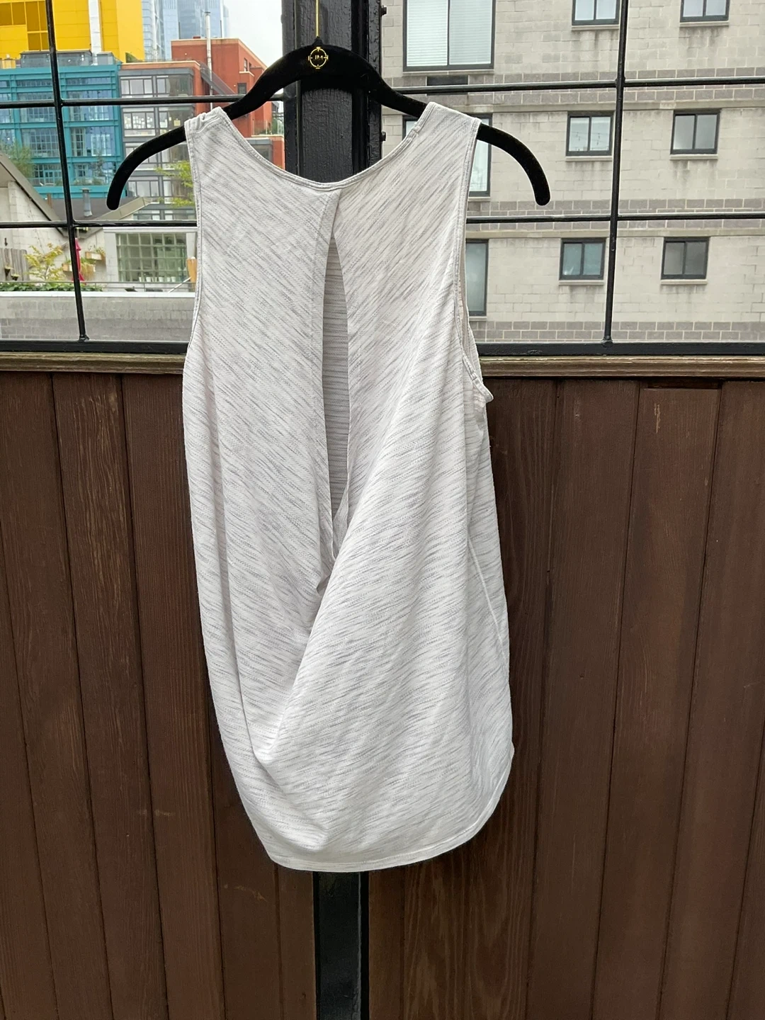 Selling a Lululemon Back in Action tank top in a light heathered gray color. It's in good condition! This tank is perfect for workouts or casual wear. The twist back detail adds a stylish touch!