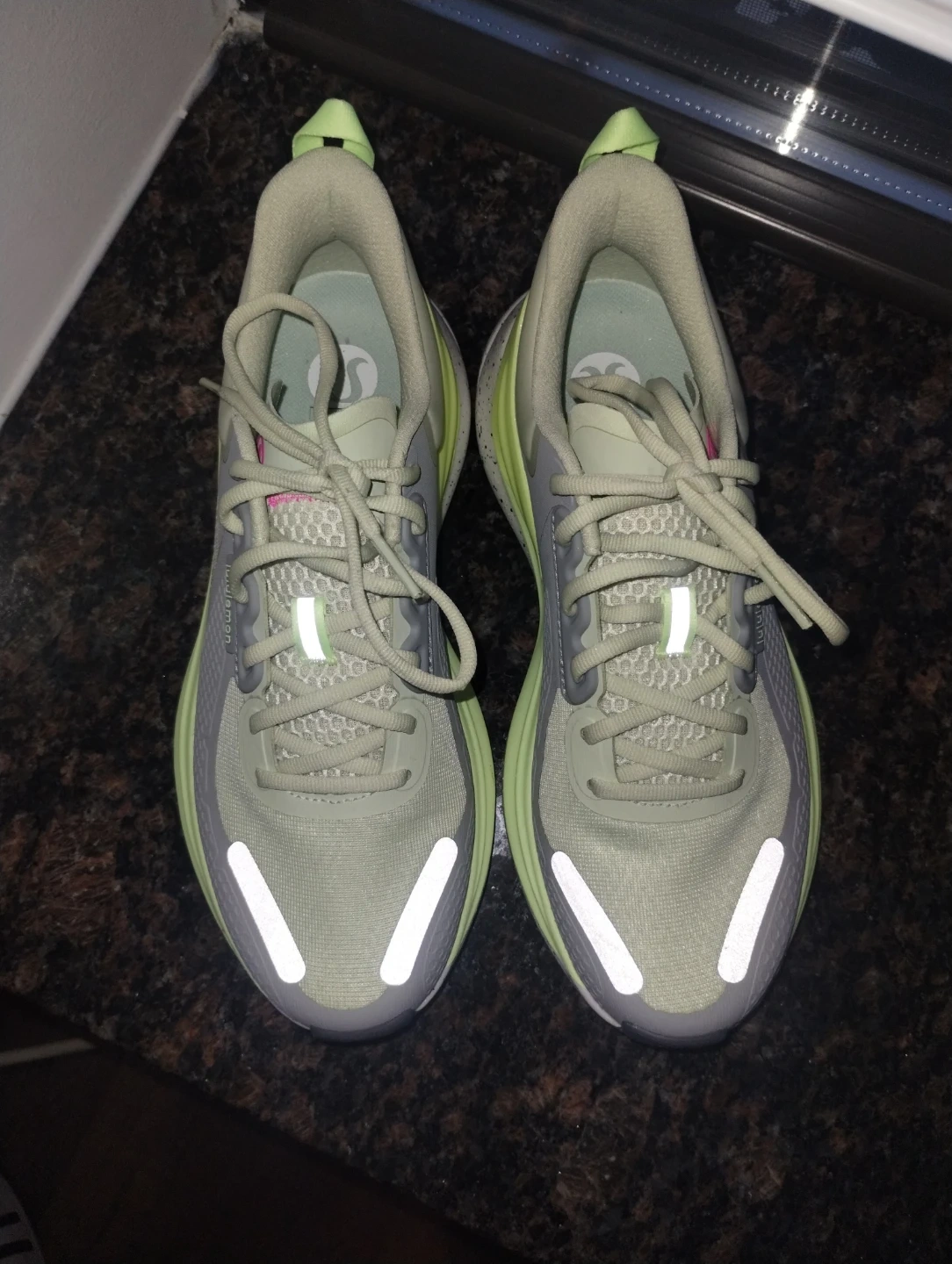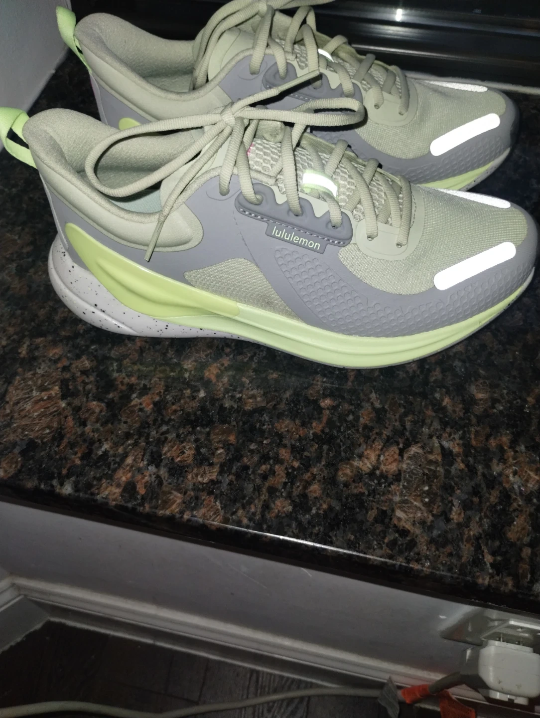 10Selling a pair of Lululemon Blissfeel women's running shoes! They are in great condition and ready for a new home. These shoes are designed for running and offer comfort and support. They feature a stylish design with reflective details for visibility. Perfect for your next workout!
