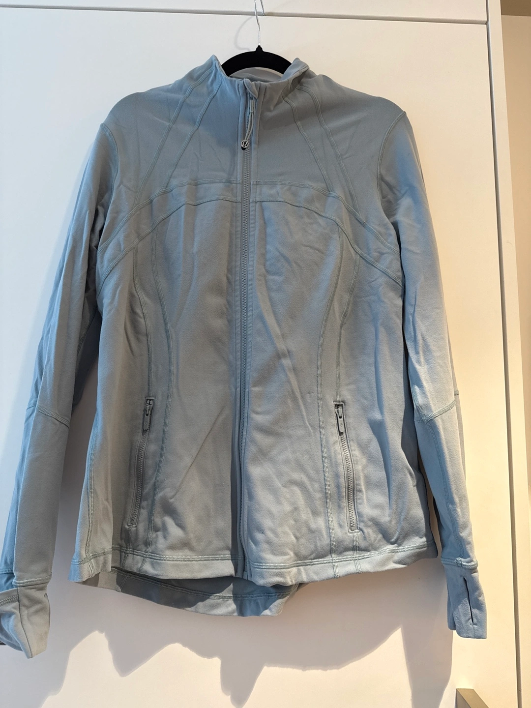 15Selling a Lululemon Define Jacket in a lovely shade of a blueish gray! It's in great condition and ready for a new home. This jacket is perfect for workouts or just running errands around town. It's comfortable and stylish, and it has a flattering fit. Don't miss out!
