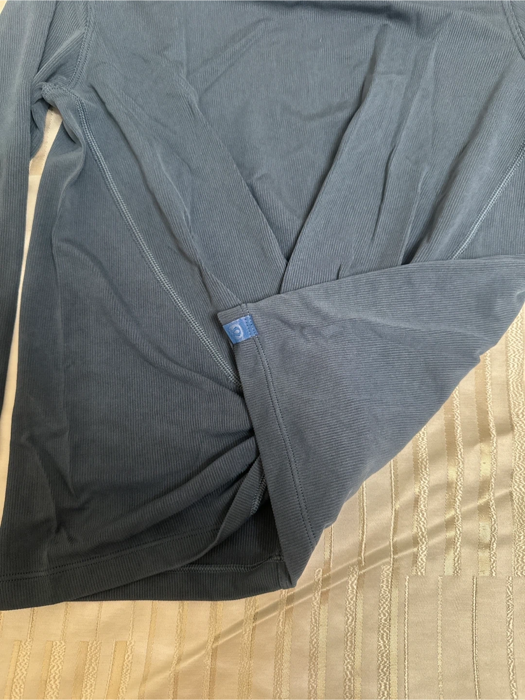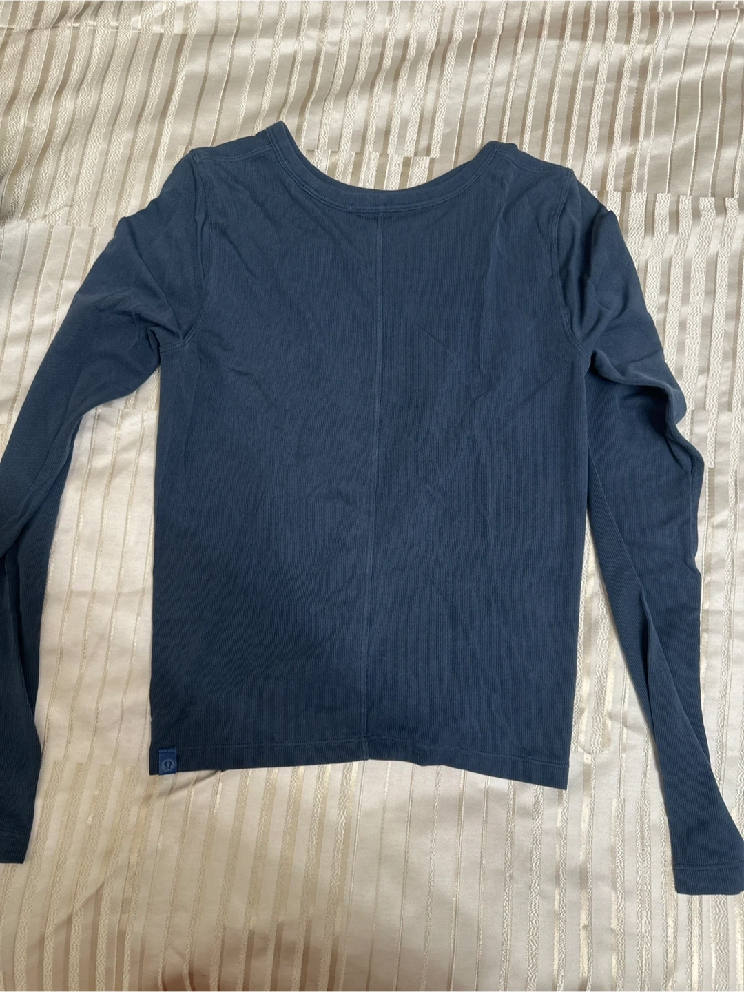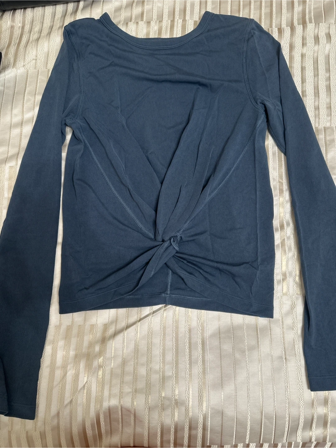 Selling a Lululemon long sleeve top in great condition! It's a size 6 and features a unique twisted front design. The color is a lovely blue-gray. Perfect for workouts or casual wear!