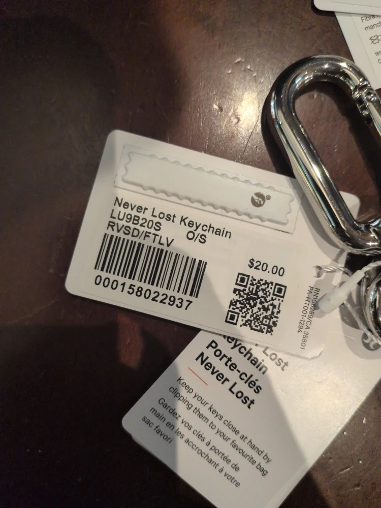 I'm selling a brand new Lululemon Never Lost Keychain! It's perfect for keeping your keys close at hand by clipping them to your bag or purse. The tag shows it originally retailed for $20 all brand new😁 or 80 for all