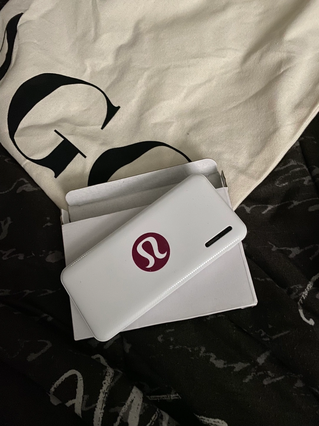 Selling a Lululemon Zodiac High Density 5000 mAh Power Bank in white! It's in great condition and comes with its original box. This power bank features: - 5000mAh capacity - Micro/Type-C input: DC 5V/2A - USB Output: DC 5V/2A Perfect for on-the-go charging!