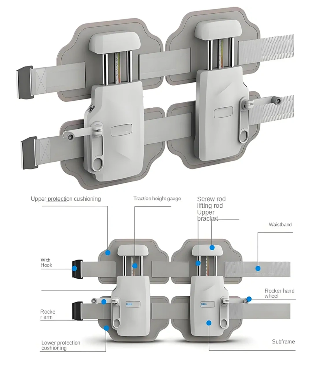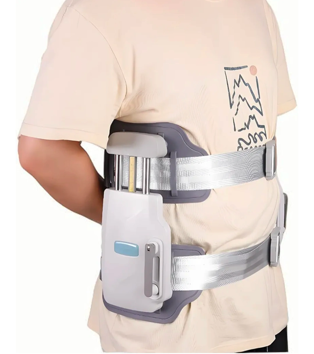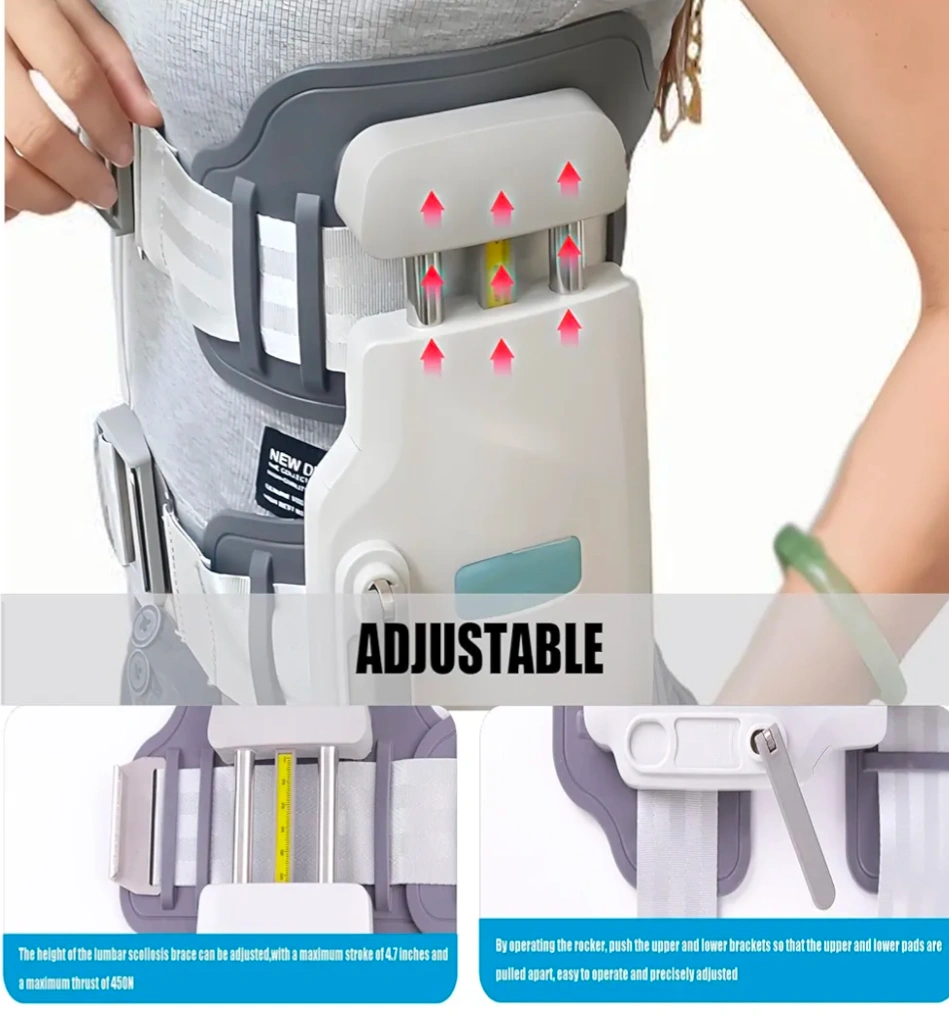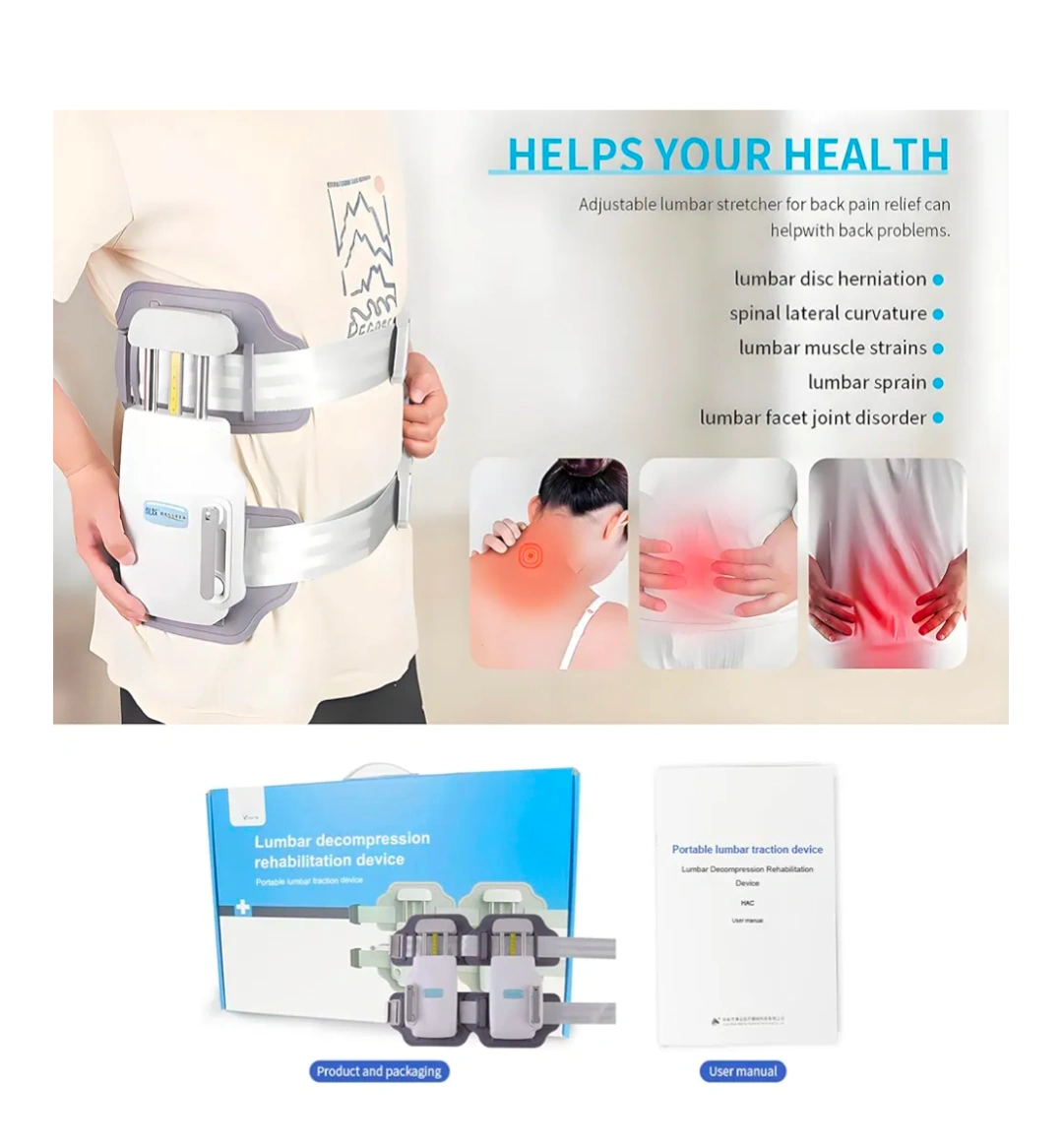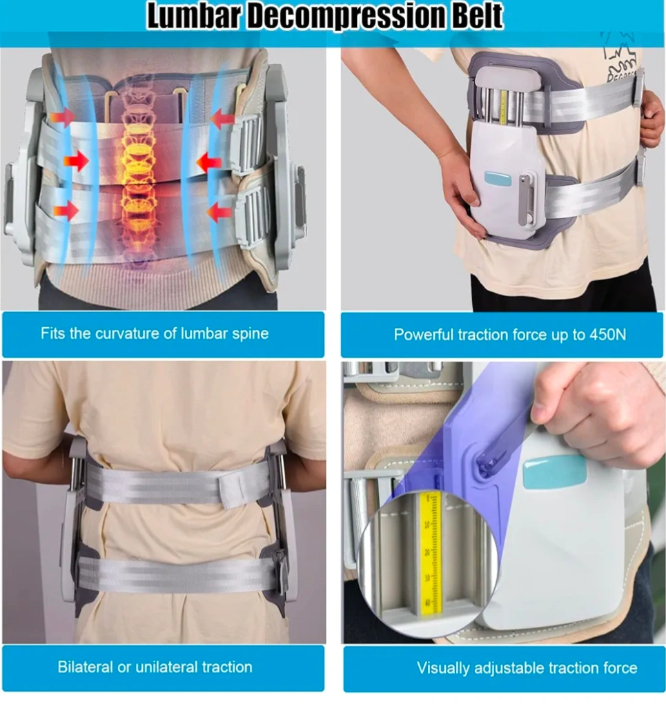 This lumbar decompression belt can help with back problems such as lumbar disc herniation, spinal lateral curvature, lumbar muscle strains, lumbar sprain, and lumbar facet joint disorder. It features adjustable lumbar stretcher for back pain relief and a powerful traction force up to 450N. The height of the lumbar scoliosis brace can be adjusted, with a maximum stroke of 4.7 inches and a maximum thrust of 450N. It allows for bilateral or unilateral traction and visually adjustable traction force