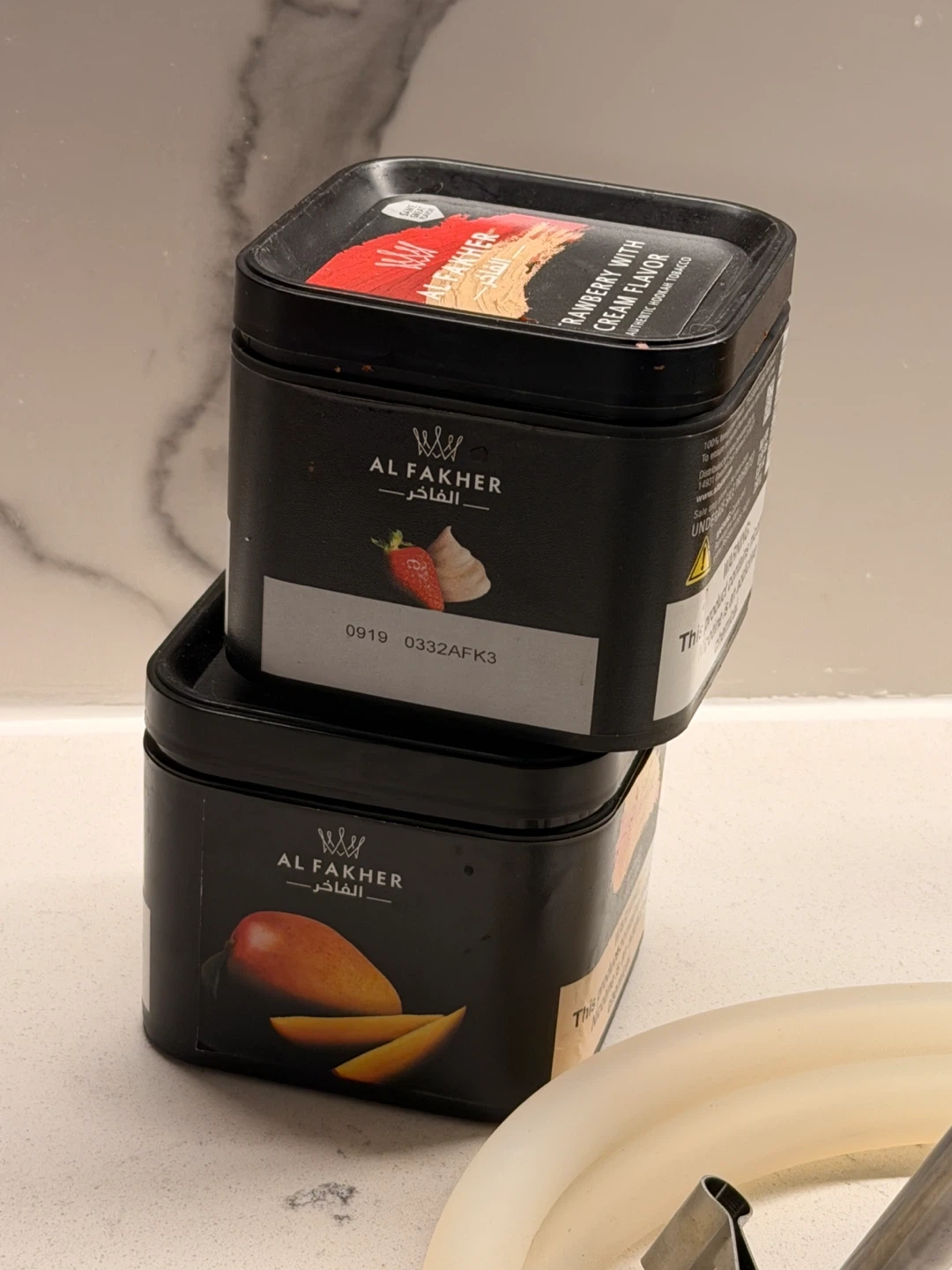 Selling a M. Rosenfeld premium hookah silicone bowl with HMD Hookartis. It comes with the original box. Also included are tongs, 2 Al Fakher shisha flavors, and Cocous charcoal. The shisha flavors are strawberry with cream and mango.