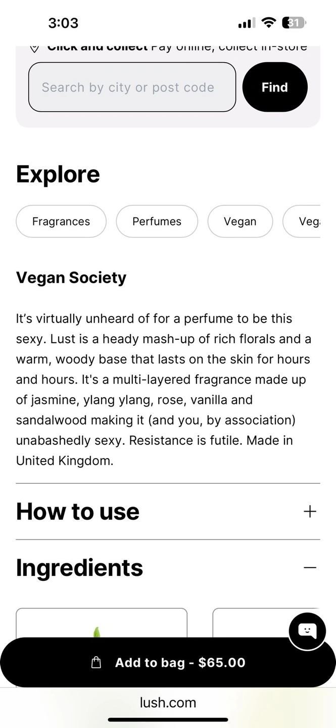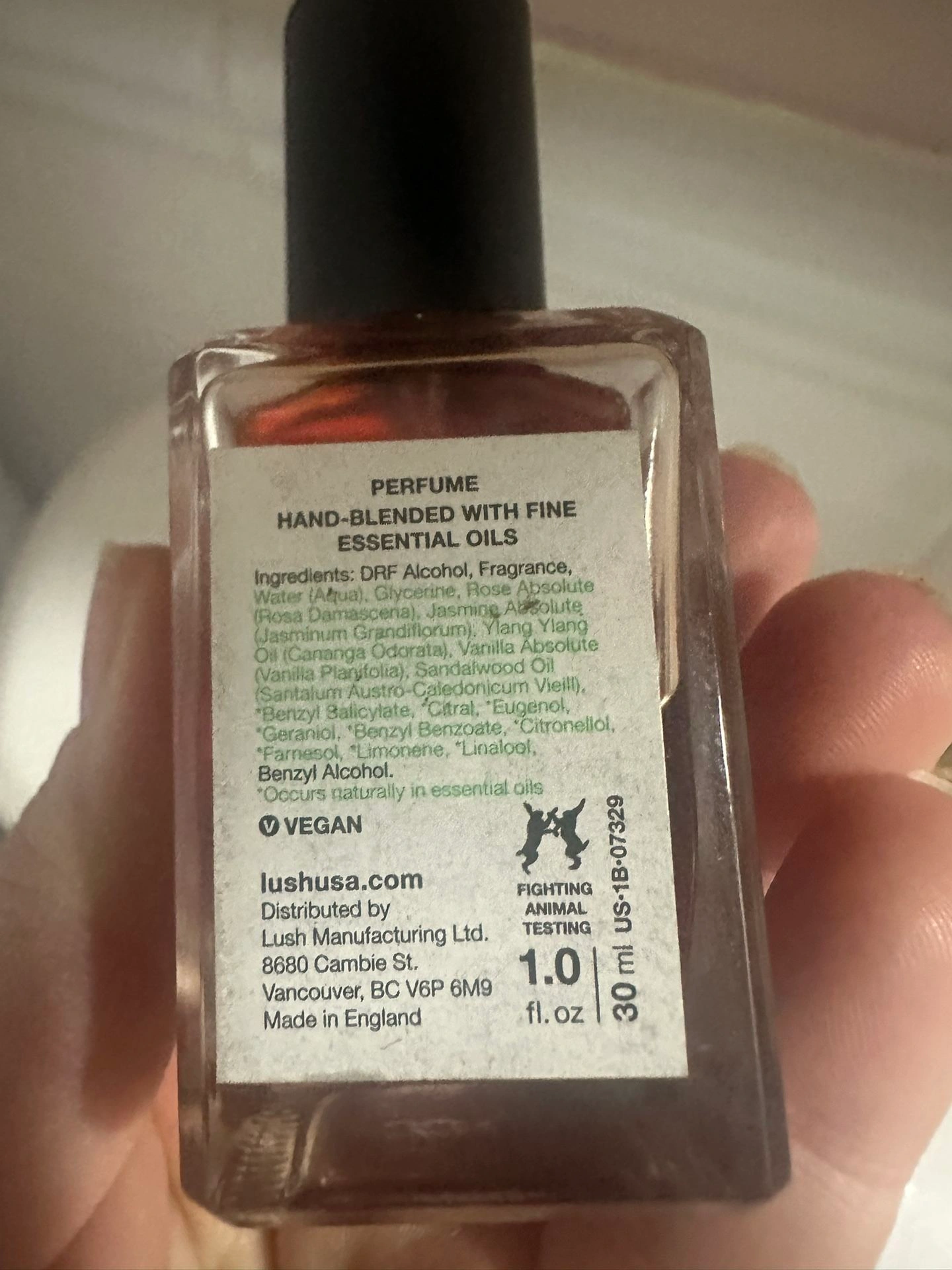 Lush perfume Lust.. put notes in the pics .. did not use this. I accidentally bought two bottles. Fragrance Name: Lust Brand: Lush