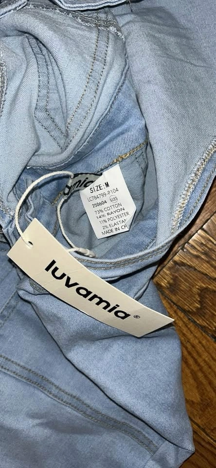 1000+New with tags women’s light blue denim overalls from Luvamia with some stretch. New with tags. Originally sold for $46. Size medium. Pick up on the upper west side of Manhattan.