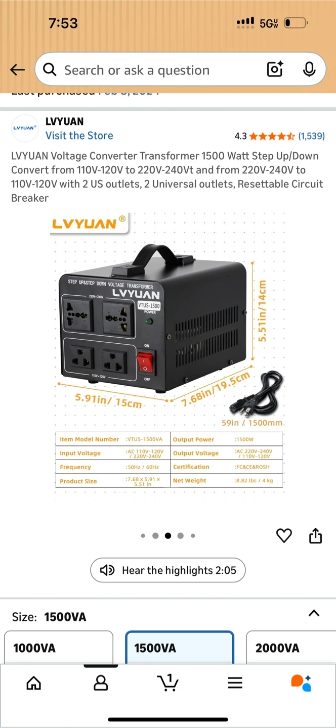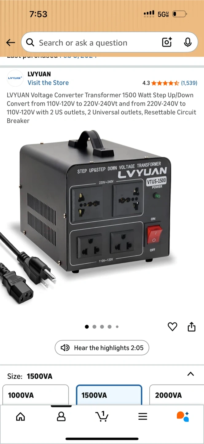 Selling a LVYUAN Voltage Converter Transformer, 1500 Watt Step Up/Down Converter. Converts from 110V-120V to 220V-240Vt and from 220V-240V to 110V-120V with 2 US outlets, 2 Universal outlets, Resettable Circuit Breaker. Item Model Number: VTUS-1500VA. Output Power :1500W Selling because we are moving. Used just few times.