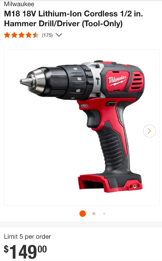 M18 Milwaukee Cordless 1/2" Hammer Drill