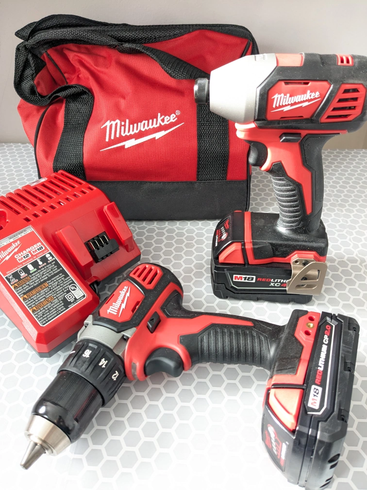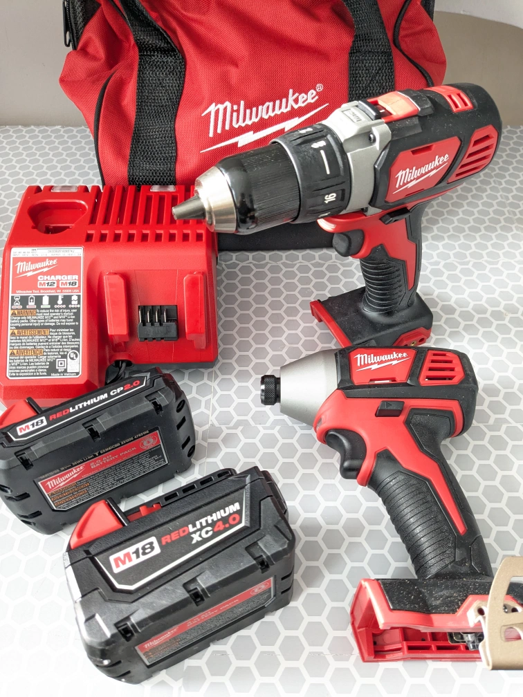 68Brand New * M18 Impact Drill & 1/2" Drill Driver * XC 4.0 & 2.0 Red Lithium Battery Pack * Multivolt Charger and Contractor Bag ....INCLUDED