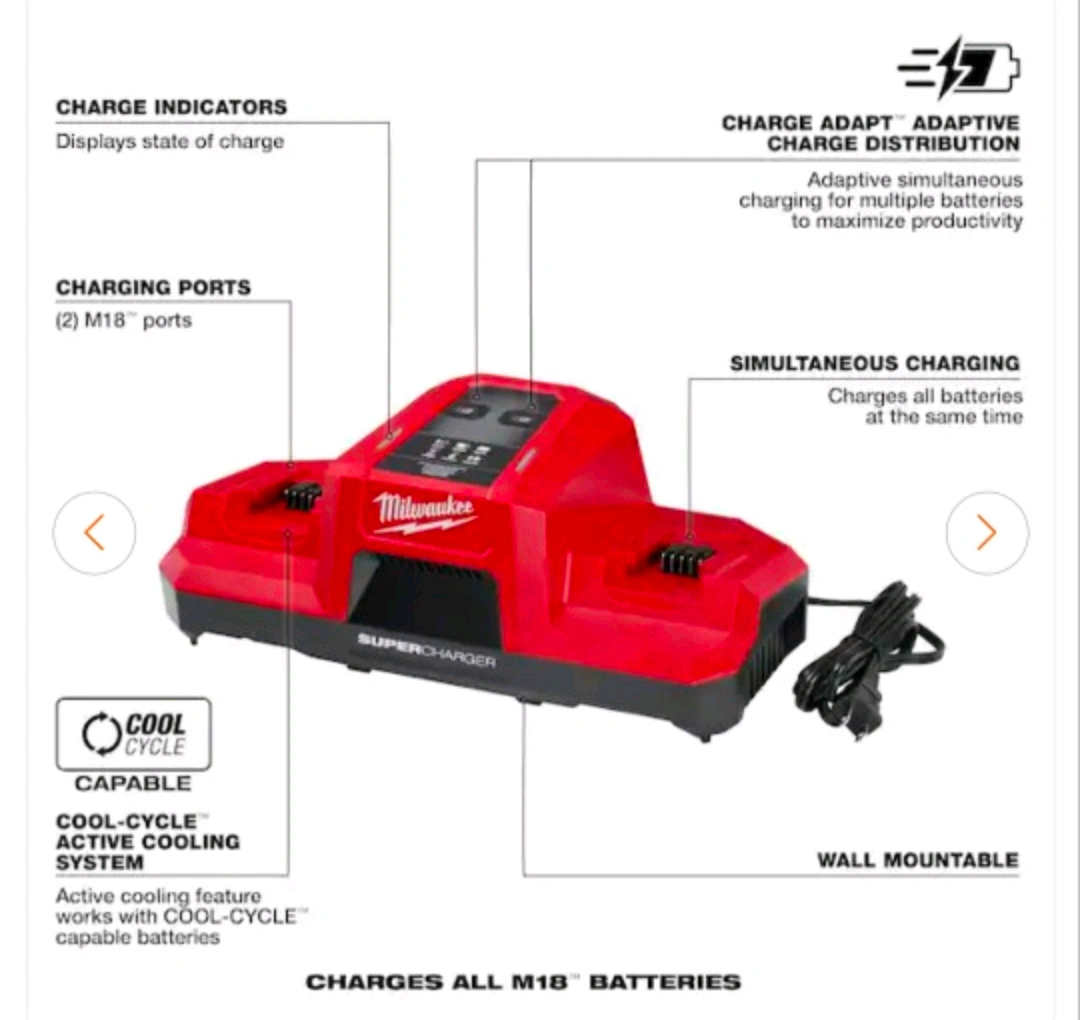 66Brand NEW * Milwaukee Dual Bay - Simultaneous SUPER FAST CHARGER with Cool Cycle Technology