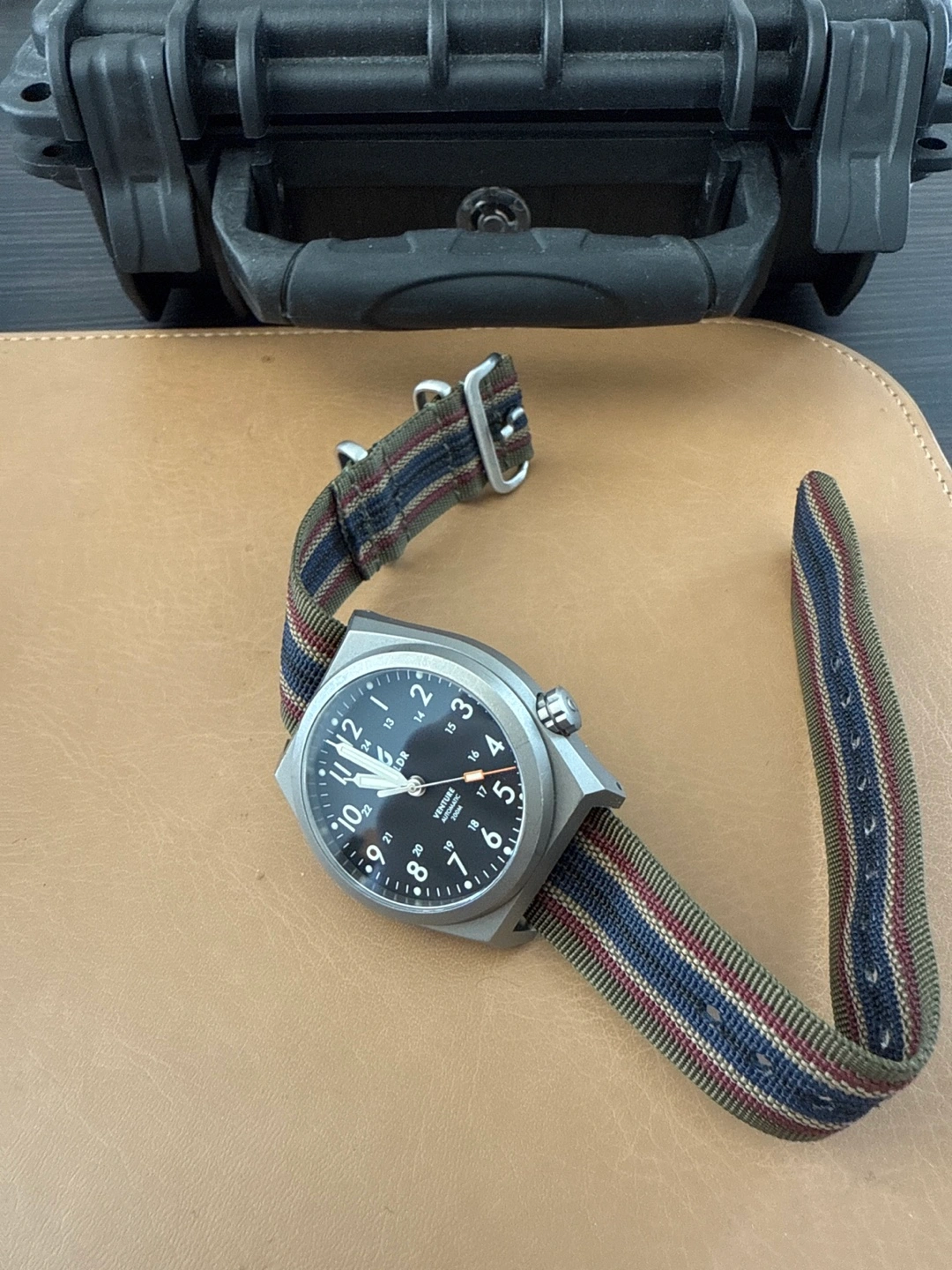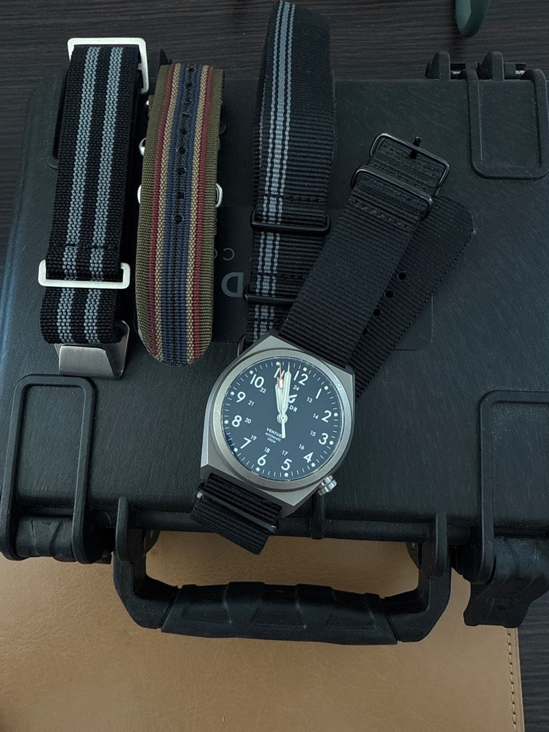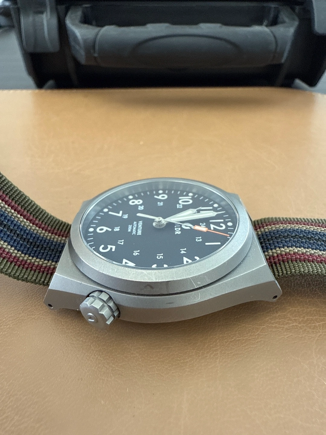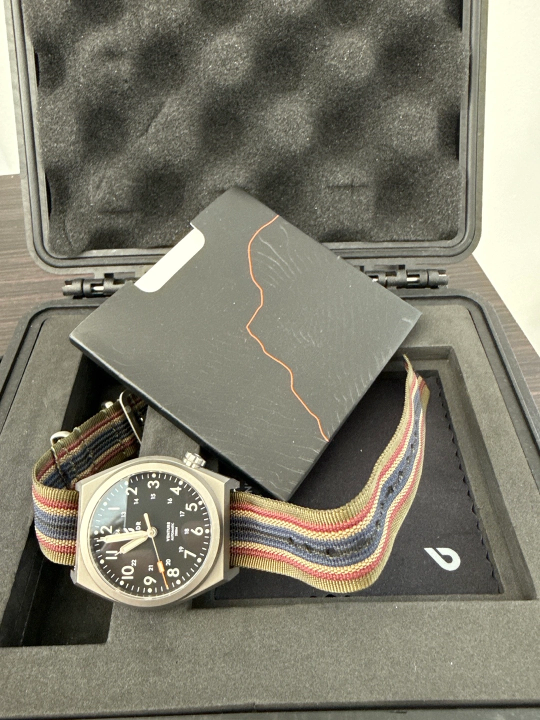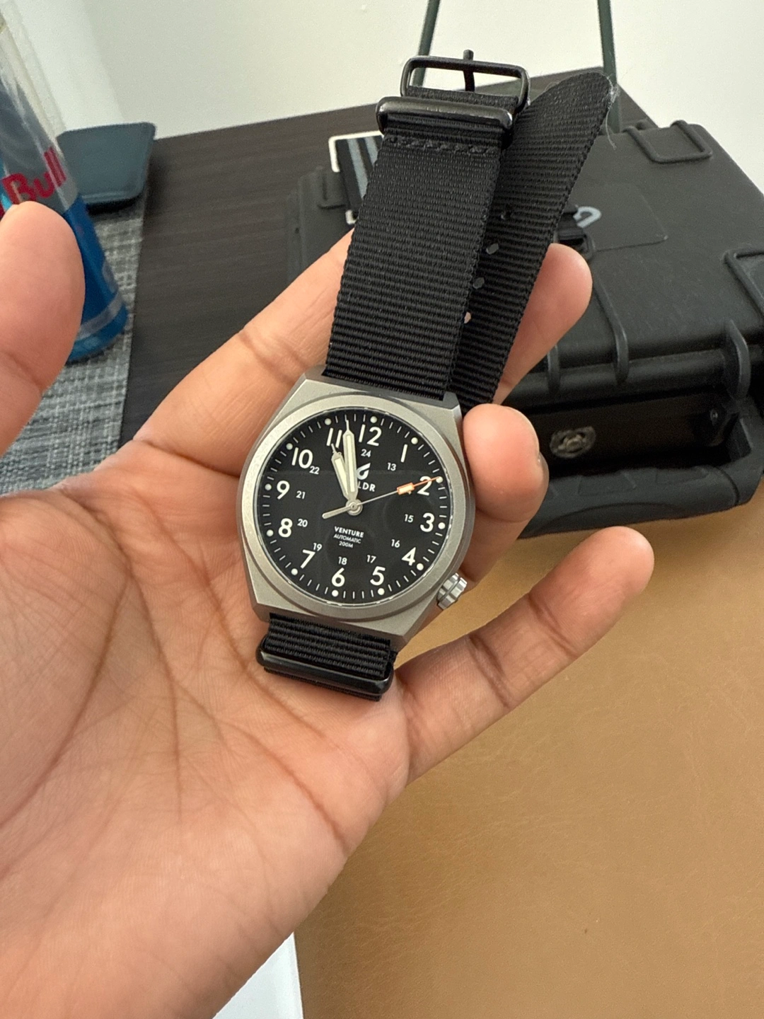 Men's Boldr Venture Automatic wristwatch. Comes with three extra straps. Durable gray case. Black face. Includes its original Boldr hard case. In good working conditon. Selling as I need to make space in my collection. Meet in Manhattan’s Hudson Yards.