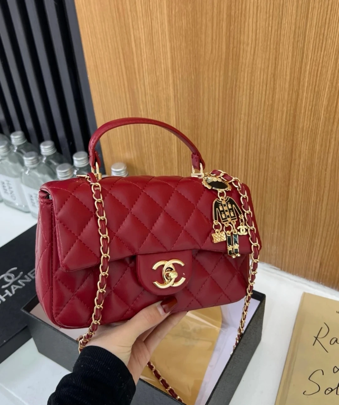Selling a beautiful red quilted handbag. It features a gold-tone chain strap and the iconic . Perfect for adding a pop of color to any outfit!