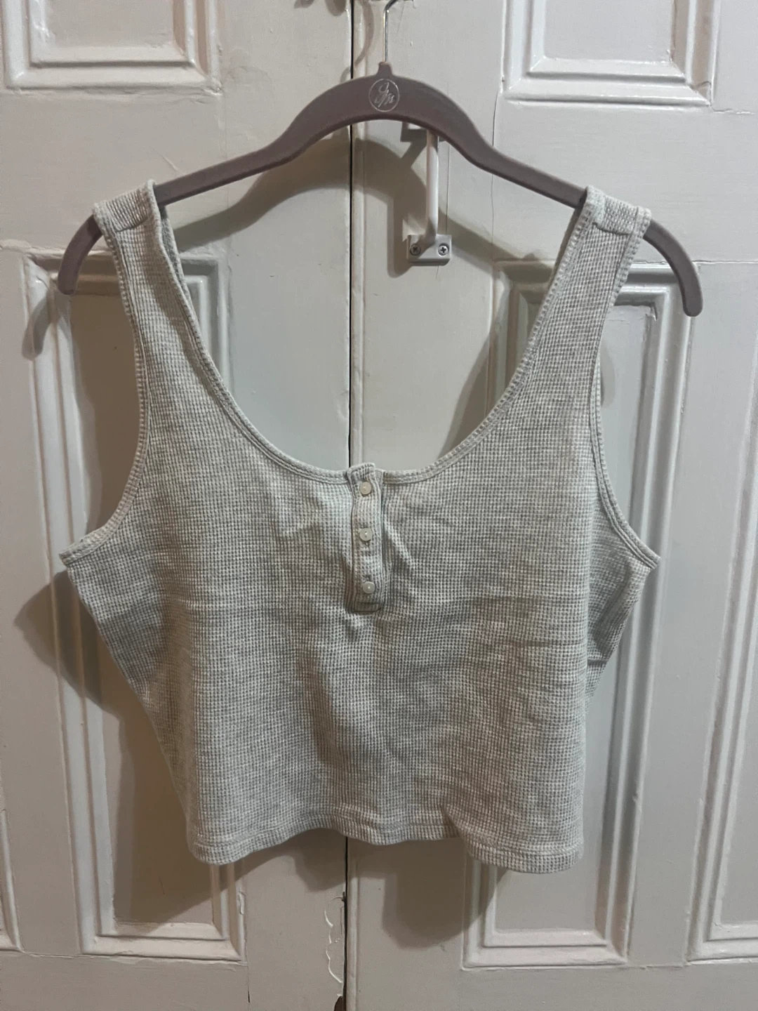 I'm selling an Old Navy cropped waffle knit tank top. It's a size large and in great condition! It's a light neutral color that's easy to match with anything.