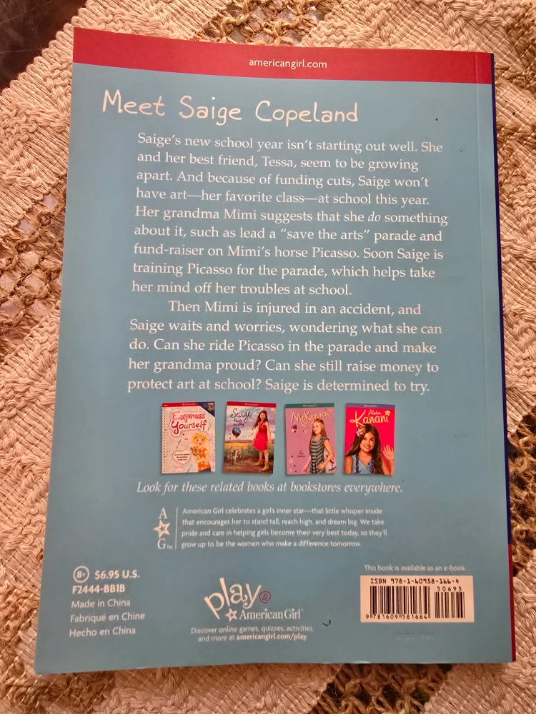 gifting the book 'Saige' by Jessie Haas from the American Girl series! It's a heartwarming story about Saige Copeland and her determination to save the art program at her school. A great read for young girls!