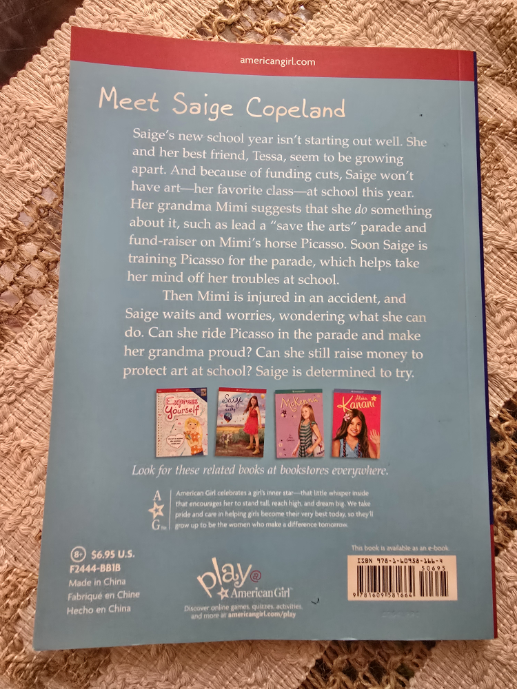 gifting the book 'Saige' by Jessie Haas from the American Girl series! It's a heartwarming story about Saige Copeland and her determination to save the art program at her school. A great read for young girls!