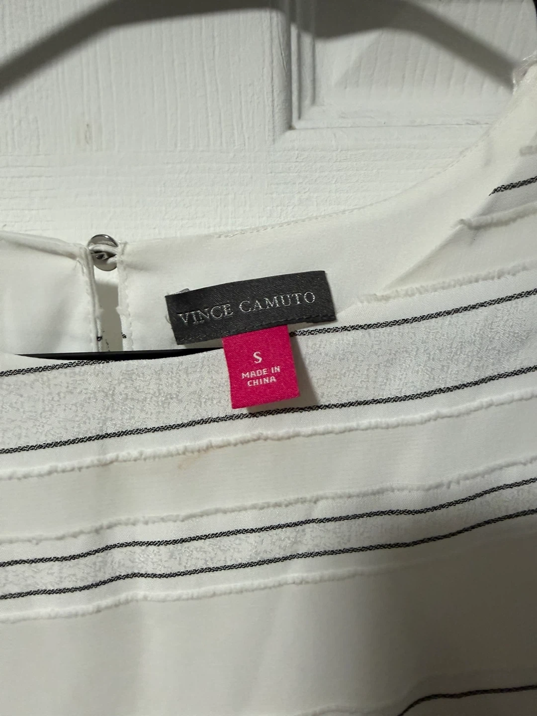 Vince Camuto White Striped Long Sleeve Blouse Size S