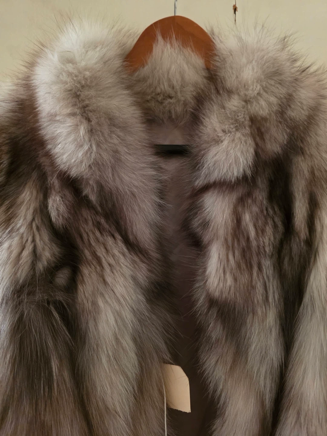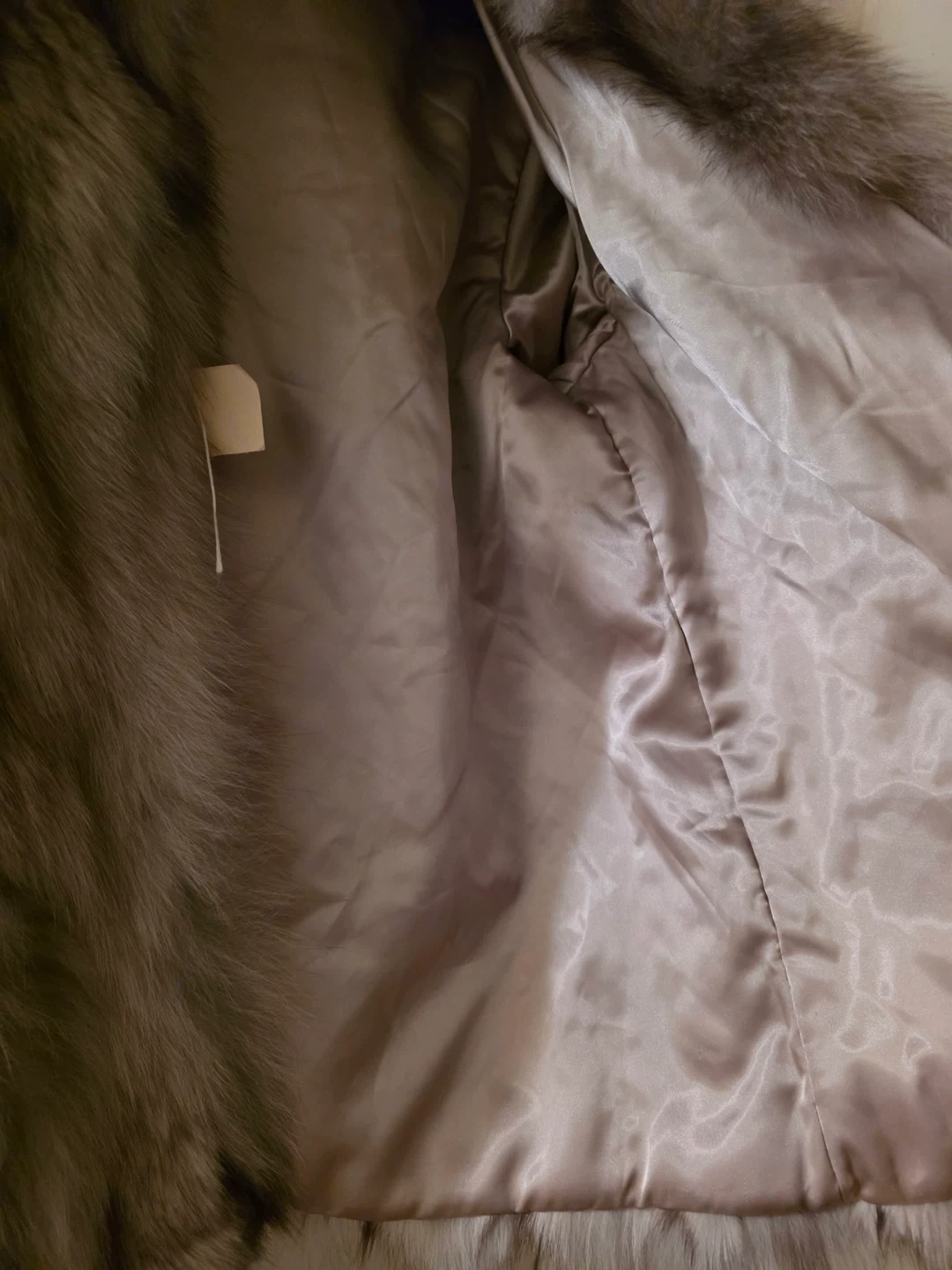 Beautiful silver fox fur coat. Lined with satin. It's a classic style that offers warmth and elegance. Who wouldn't love this luxurious piece?