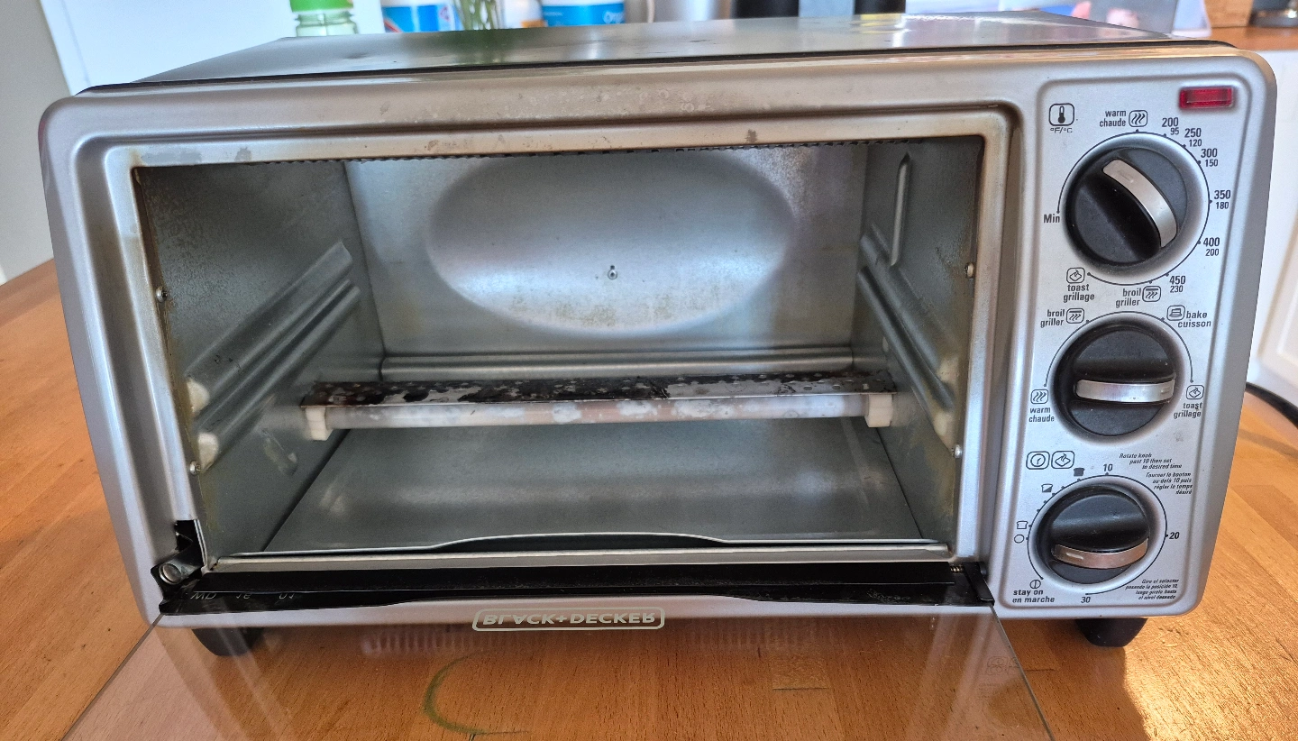 Large enough for a 9” pizza or four slices of bread, the BLACK+DECKER® 4-Slice Stainless Steel Toaster Oven with Broiler Pan complements any kitchen countertop. This compact, versatile toaster oven bakes, broils, toasts, and keeps food warm, at up to 450°F. It comes with a baking and broiler pan that fits perfectly into the small toaster oven interior. Plus, our exclusive EvenToast Technology optimizes heat distribution to toast bread evenly. When it’s time to eat, trust the #1 brand in toaster ovens*—BLACK+DECKER®. Large viewing window keep an eye on food during cooking. The durable glass window gives you a clear view of food throughout the cooking process. Bake/broiler pan don’t worry about finding pans to fit in the oven. The included baking/broiling pan fits perfectly, making it easy to insert and remove food. Toasting rack also included.