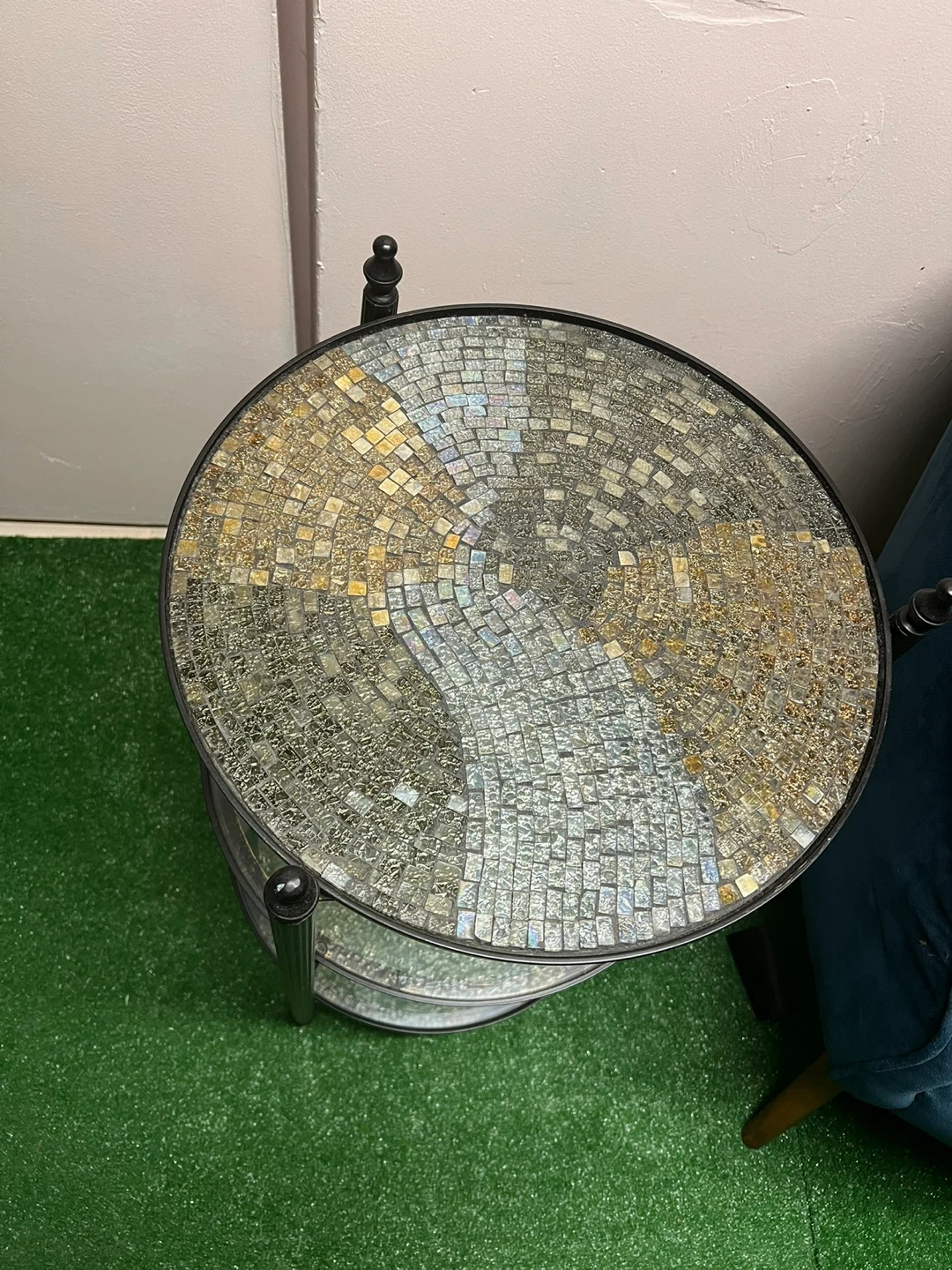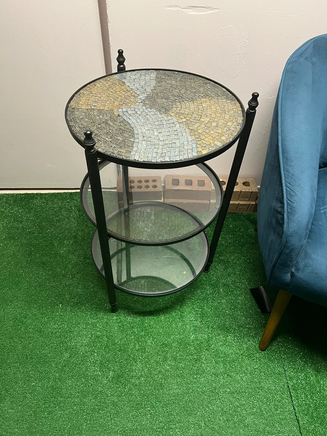 Buy & SellMosaic Top 3-Tier Round Side TableMosaic Top 3-Tier Round Side Table$40Mosaic top accent table with three glass shelves. Black metal frame.Dimensions16” x 28”WHERE TO MEET11385View MapSELLERJudyRidgewood979 reviews0 chats·1 favorites·6 viewsSEND CHAT TO SELLERHi Judy! I’m interested in your listing.Hi Judy! I’m interested in your listing.Get the Karrot app to chatSign In to chat
