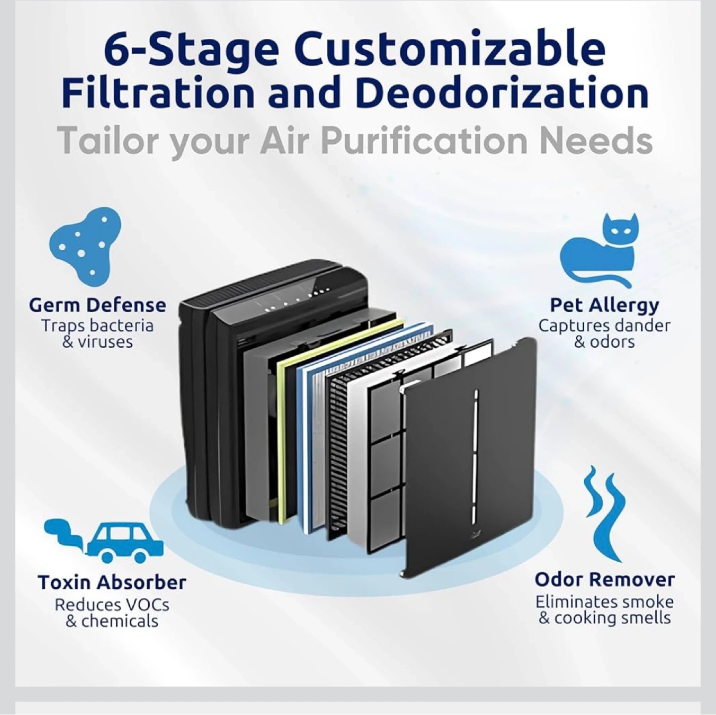 This Rabbit air purifier features a BioGS HEPA filter that traps allergens and particles. It offers 6-stage filtration and deodorization for tailored air purification. Purifies up to 1610 sq. ft. This unit is ideal for reducing pollutants and odors.